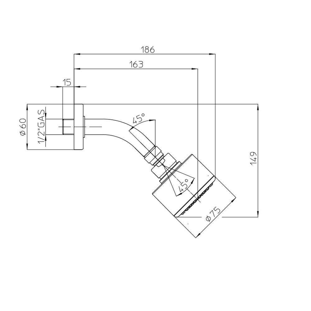 Bossini Cylindrico/1 Duschkopf Messing verchromt mit Arm d.21 mm
