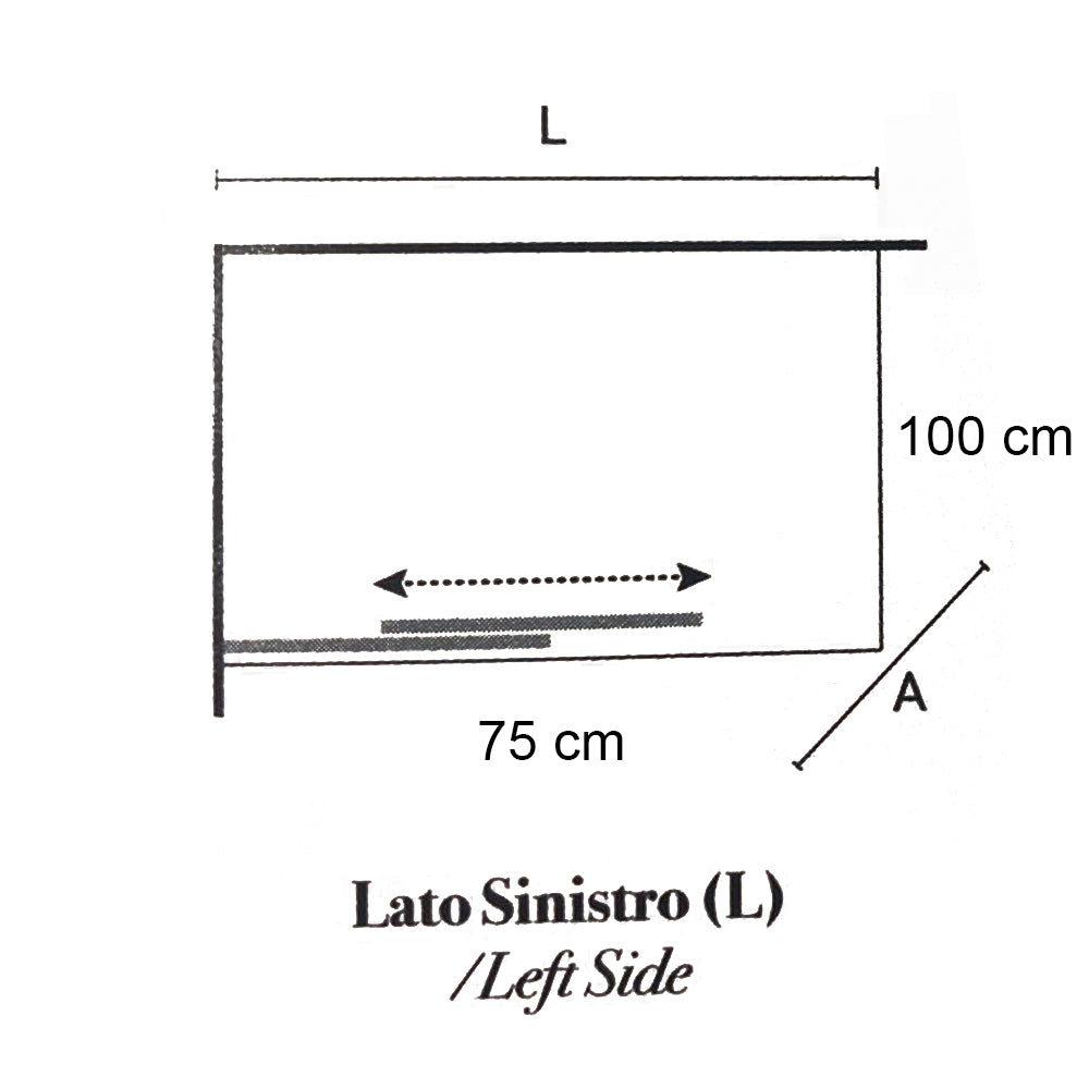 Rechteckige Duschkabine mit Ecköffnung 75x100 cm Modell Lauren aus 8 mm gehärtetem Kristall - LINKSEITE