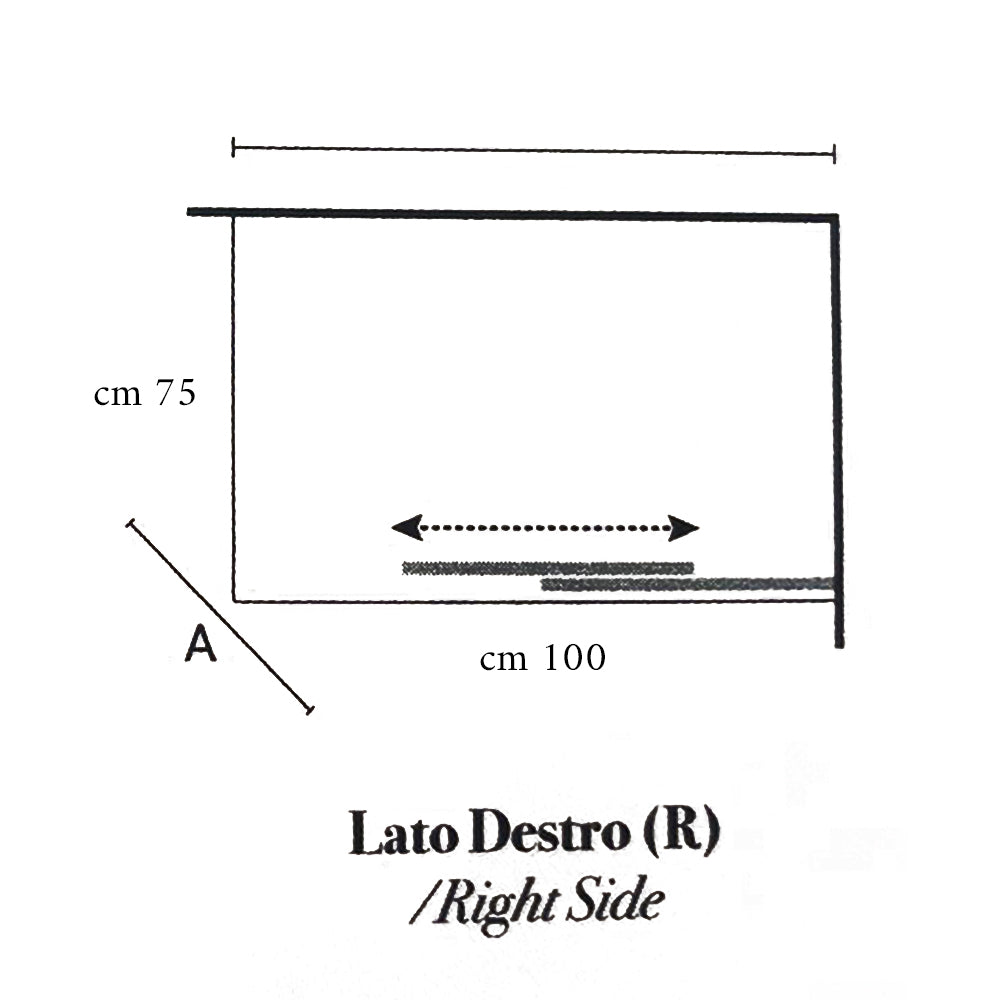 Rechteckige Duschkabine mit Ecköffnung 100x75 cm Modell Lauren aus 8 mm gehärtetem Kristall - RECHTE SEITE