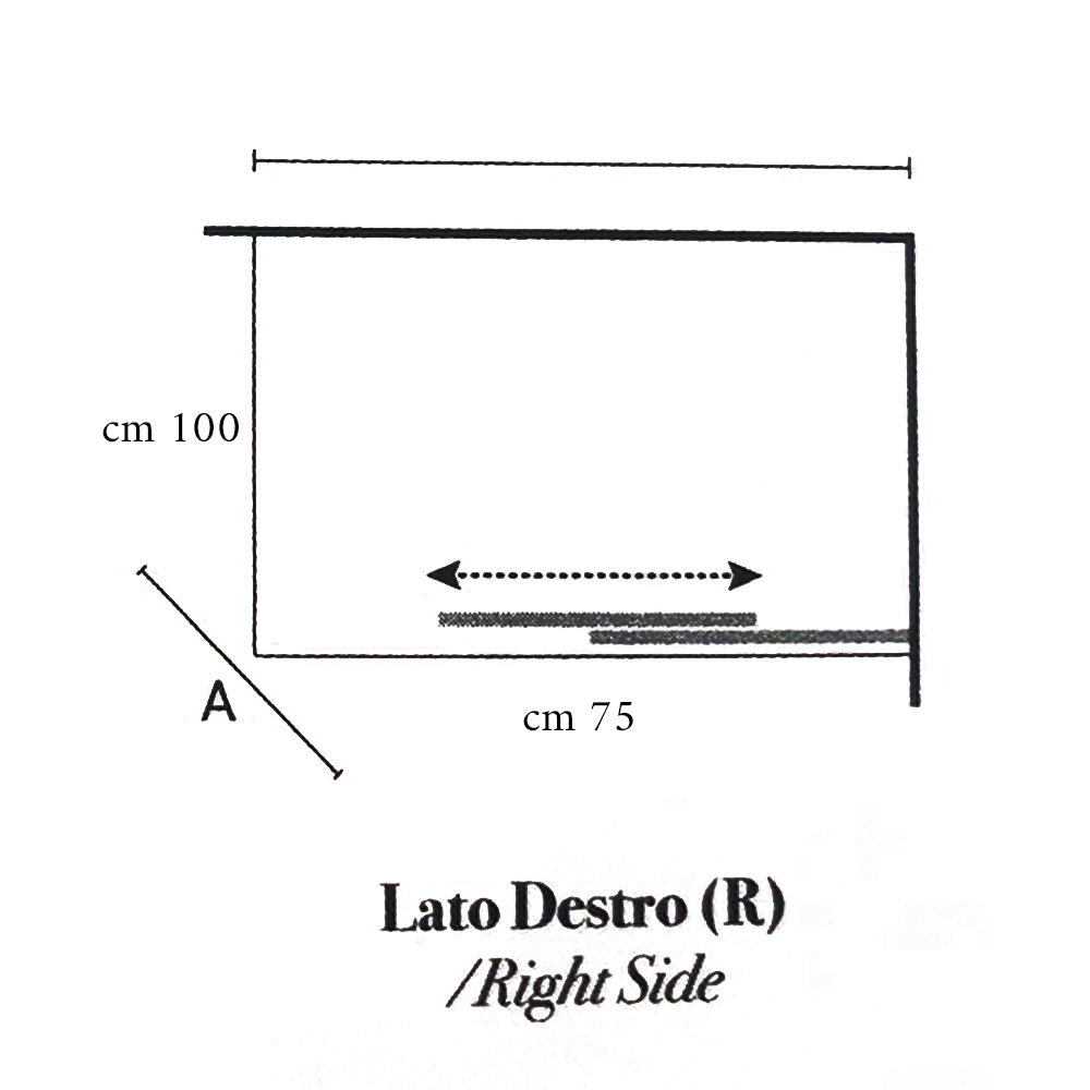 Quadratische Duschkabine mit seitlicher Schiebetür, Ecköffnung, 75x100 cm, Modell Lauren aus 8 mm gehärtetem Kristallglas - RECHTE SEITE