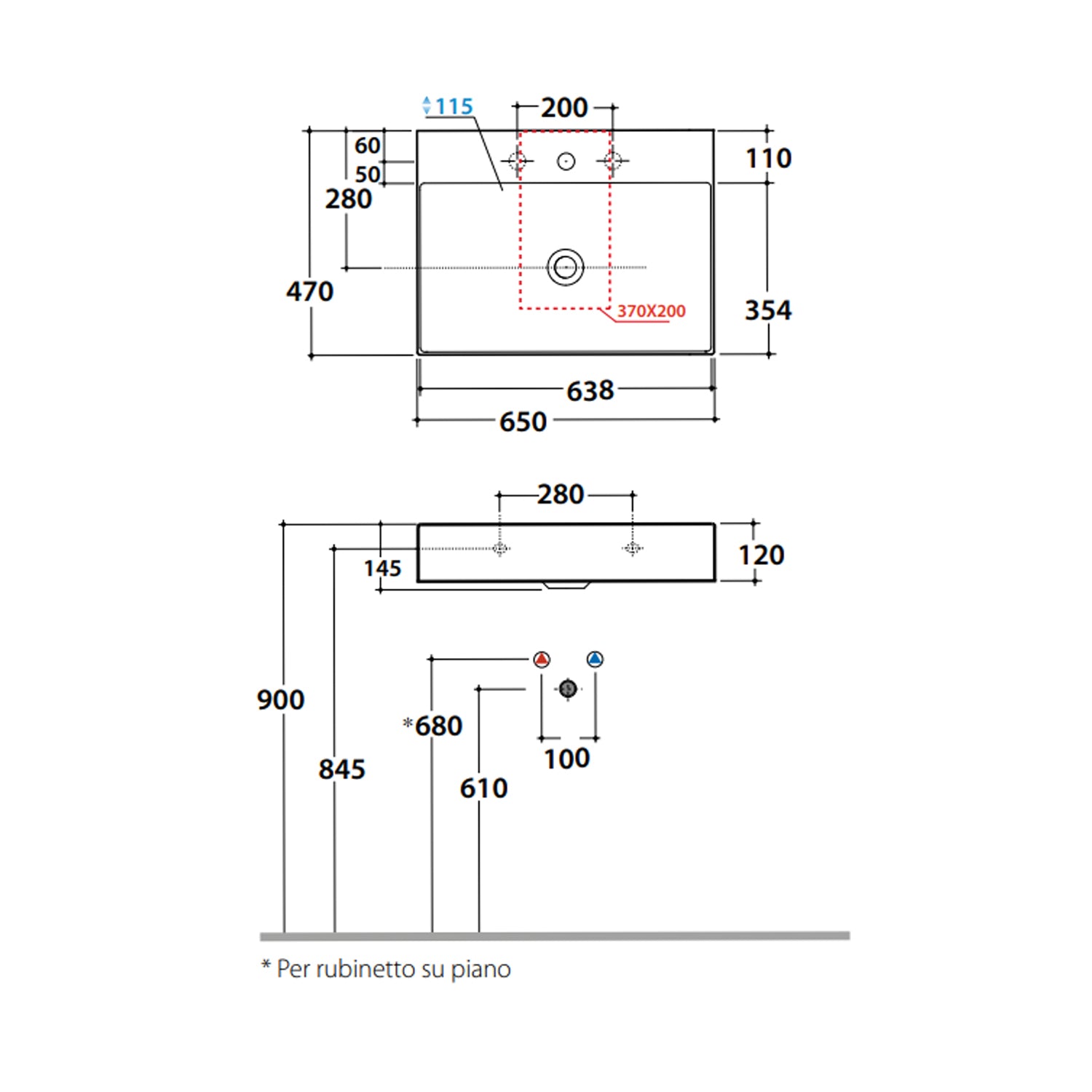 Rechteckiges Waschbecken T-Edge 65x47x12 cm Keramik Globo Weiß glänzend