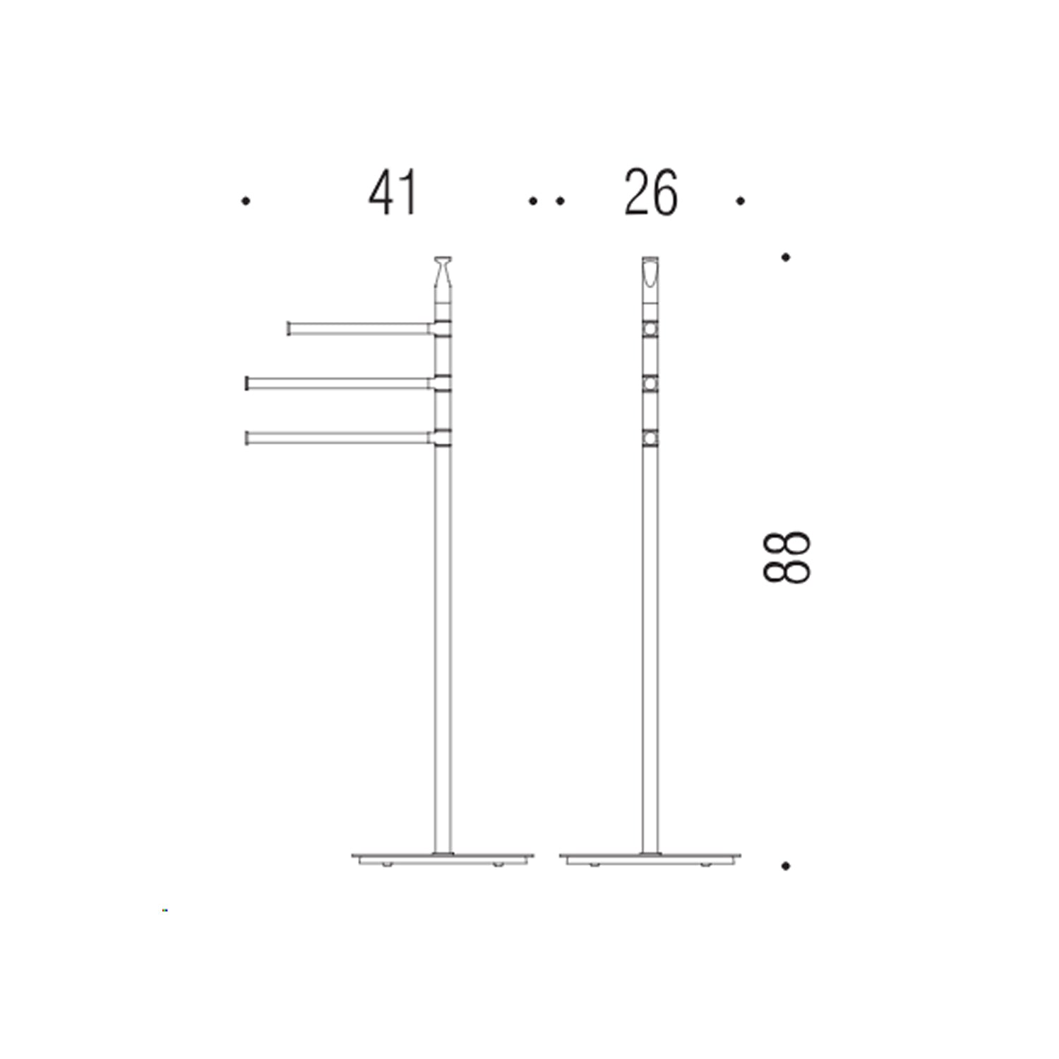 Die Kollektion Planets bevorzugt eine zeitlose, zeitgenössische Sprache, die für Bäder jeder Größe konzipiert ist und praktische Lösungen bietet, ohne die Ästhetik zu opfern. Hergestellt in Italien, mit einer glänzend verchromten Oberfläche und einem stabilen Sockel, vereint dieser Ständer mit drei Handtuchstangen Funktionalität und Prestige in einem wertvollen Objekt, das für die Langlebigkeit bestimmt ist und zu einem ikonischen Element des Raumes wird.