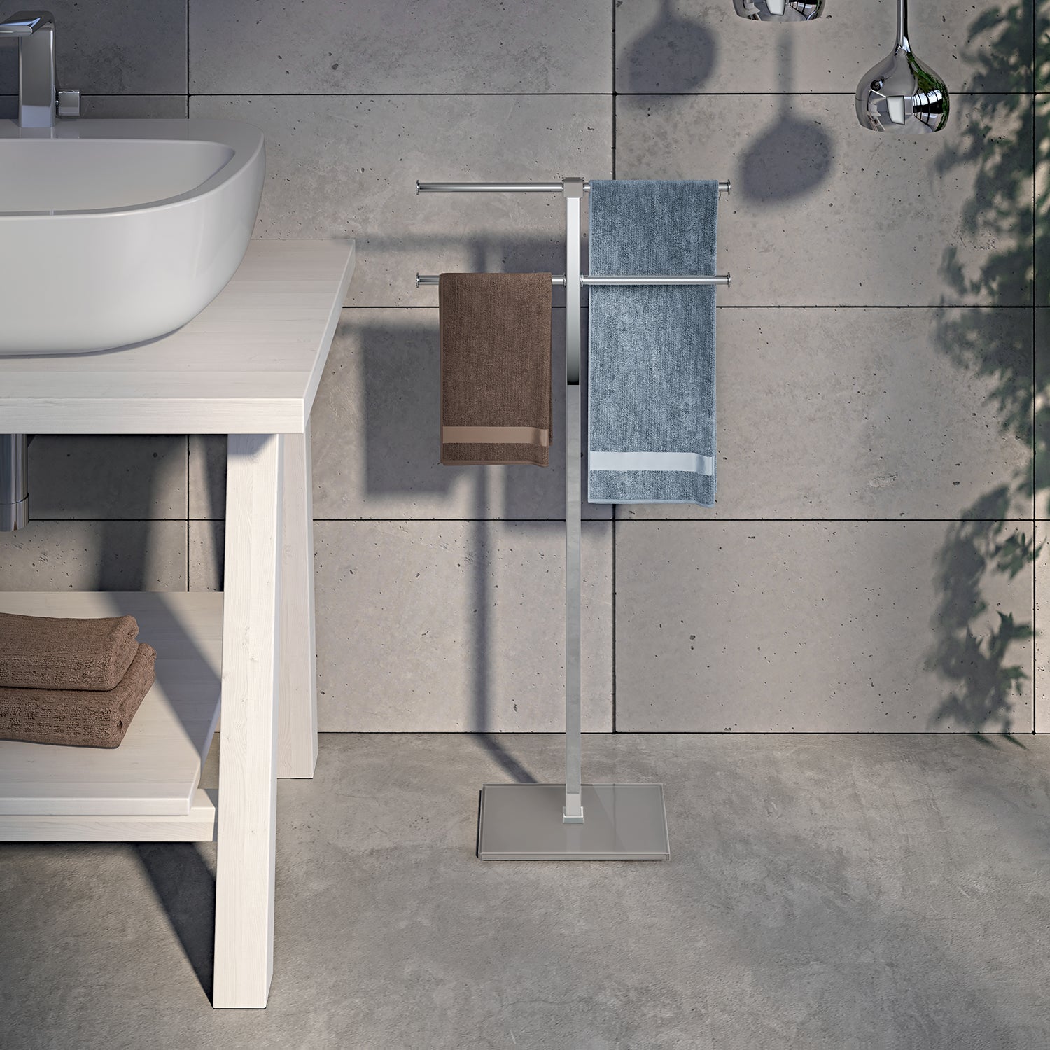 - Design: Vertikale Struktur mit zwei horizontalen Armen, perfekt für Handtücher verschiedener Größen.