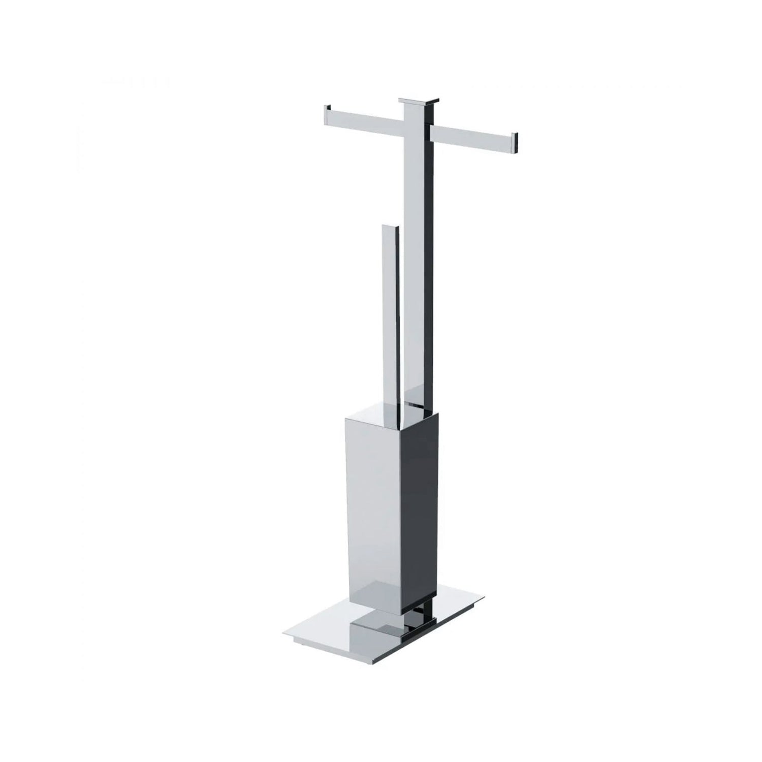 Der freistehende Halter mit doppeltem Toilettenpapierhalter und Bürstenhalter aus Messing Units, entworfen von Colombo Design, verkörpert praktische Raffinesse. Hergestellt aus glänzendem Messing, zeigt er eine geometrische Silhouette, die Solidität und klare Linien vereint und die tägliche Hygiene zu einem stilvollen Ritual erhebt. Die sorgfältige Montage und die langlebige Oberfläche gewährleisten eine zeitbeständige Präsenz und bieten einen eleganten Blickfang für Badezimmer mit zeitgenössischem Geist. Begrenzte Verfügbarkeit, gedacht für diejenigen, die den Wert von Handwerkskunst schätzen.