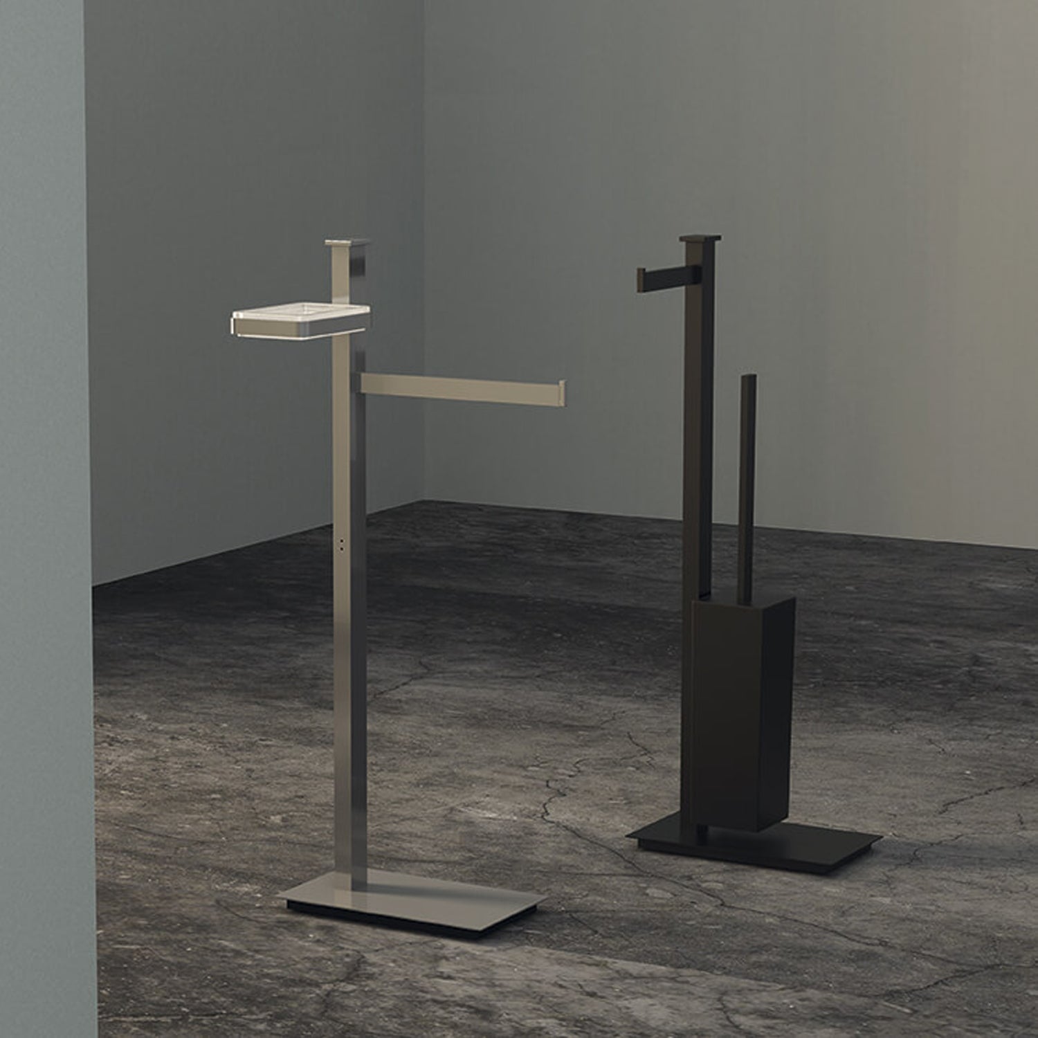 Im Einklang mit dem Exzellenzprofil der Units-Kollektion von Colombo Design drückt diese gerade Stehleuchte mit Seifenhalter und Handtuchhalter eine Synthese aus makelloser Funktionalität und zeitloser Schönheit aus. Hergestellt aus Messing mit glänzender Oberfläche, trägt die Säulenstruktur einen Seifenhalter und eine Handtuchstange mit präzisen Proportionen und glatten Oberflächen. Jedes Detail, von den klaren Linien bis zu den richtigen Winkeln, spiegelt eine handwerkliche Sorgfalt wider, die den täglichen Gebrauch zu einem Stilritual in zeitgenössischen Bädern erhebt.