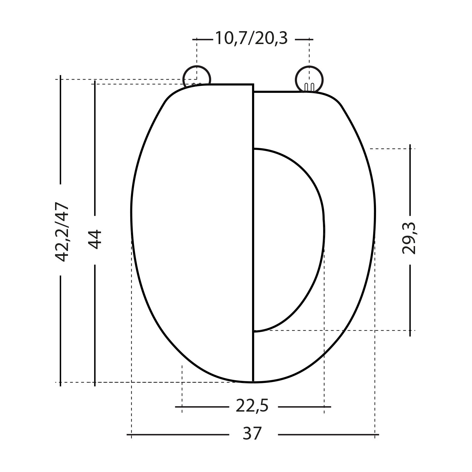 - Scharniere: Stahl, verstellbarer Achsabstand