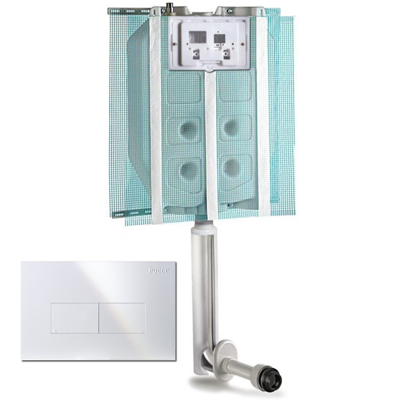 Der Pucci Eco Unterputz-Spülkasten für bodenstehende WCs ist Ausdruck von Handwerkskunst und ingenieurtechnischem Umdenken. Für Wandinstallationen in Mauerwerk konzipiert, vereint er eine Zweitastensteuerung, die den Wasserverbrauch optimiert und den Gesamtverbrauch im Laufe der Zeit reduziert. Hergestellt aus hochwertigem Polyethylen, bietet er Isolierung gegen Kondenswasser und ein vormontiertes Putzträgernetz, das die Ausrichtung und strukturelle Robustheit erleichtert. Jedes Detail spiegelt eine Tradition von Sorgfalt, Zuverlässigkeit und technischer Klarheit wider, die Pucci zu einem Referenzpunkt in der Branche gemacht hat, geschätzt von Installateuren und Enthusiasten für seine Langlebigkeit und seinen inneren Wert.