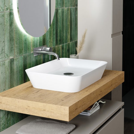 View full detailsLavabo da appoggio 54x40 in ceramica bianca BathCore modello ROS55 incarna la perfetta fusione tra minimalismo contemporaneo e sofisticatezza forma...