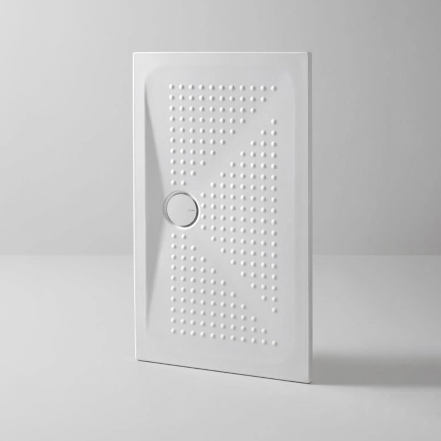 The Relax design highlights premium materials and a sober aesthetic, ideal for contemporary settings. The shower tray is designed for a clean and simple installation, with a raised anti-slip texture on the surface and a circular drain hole finished in chrome. Thanks to the high-quality ceramic, it is easy to clean and maintains shine and texture over time. Limited availability for those seeking a distinctive and durable bathroom element.