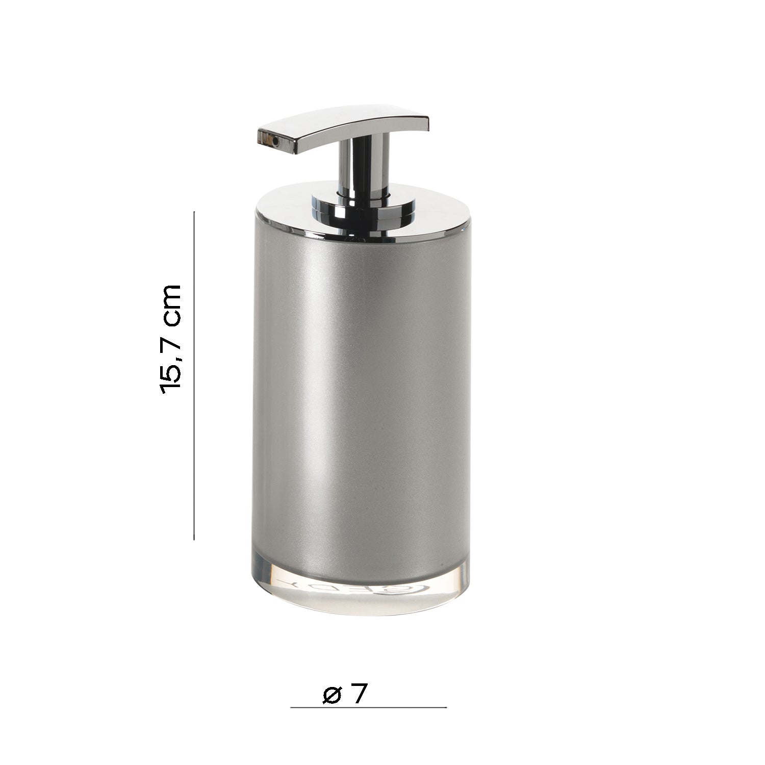Essential elegance, Gedy's Vega line stands on the sink as a design object combining artisanal mastery and contemporary refinement. Made of high-quality resin and finished in silver, the countertop soap dispenser radiates a subtle glow that elevates the bathroom environment. With a diameter of 7 cm and a height of 15.7 cm, it holds up to 255 ml of soap, offering discreet functionality and visual presence.