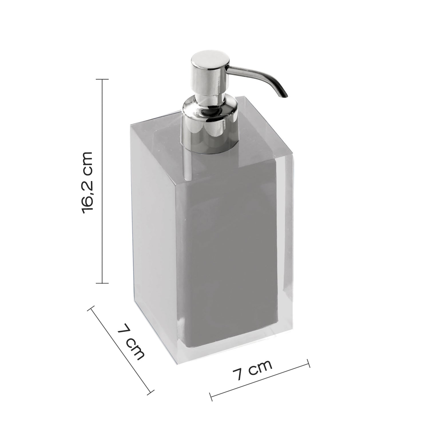 Distinctly elegant, the Rainbow countertop soap dispenser by Gedy in Silver finish combines daily functionality and refinement. The silver resin body captures light with a subtle shine, while the chrome metal dispenser offers sturdiness and precise use. With a 210 ml capacity, it invites an orderly and discreet bathroom routine, transforming a practical accessory into a design element.