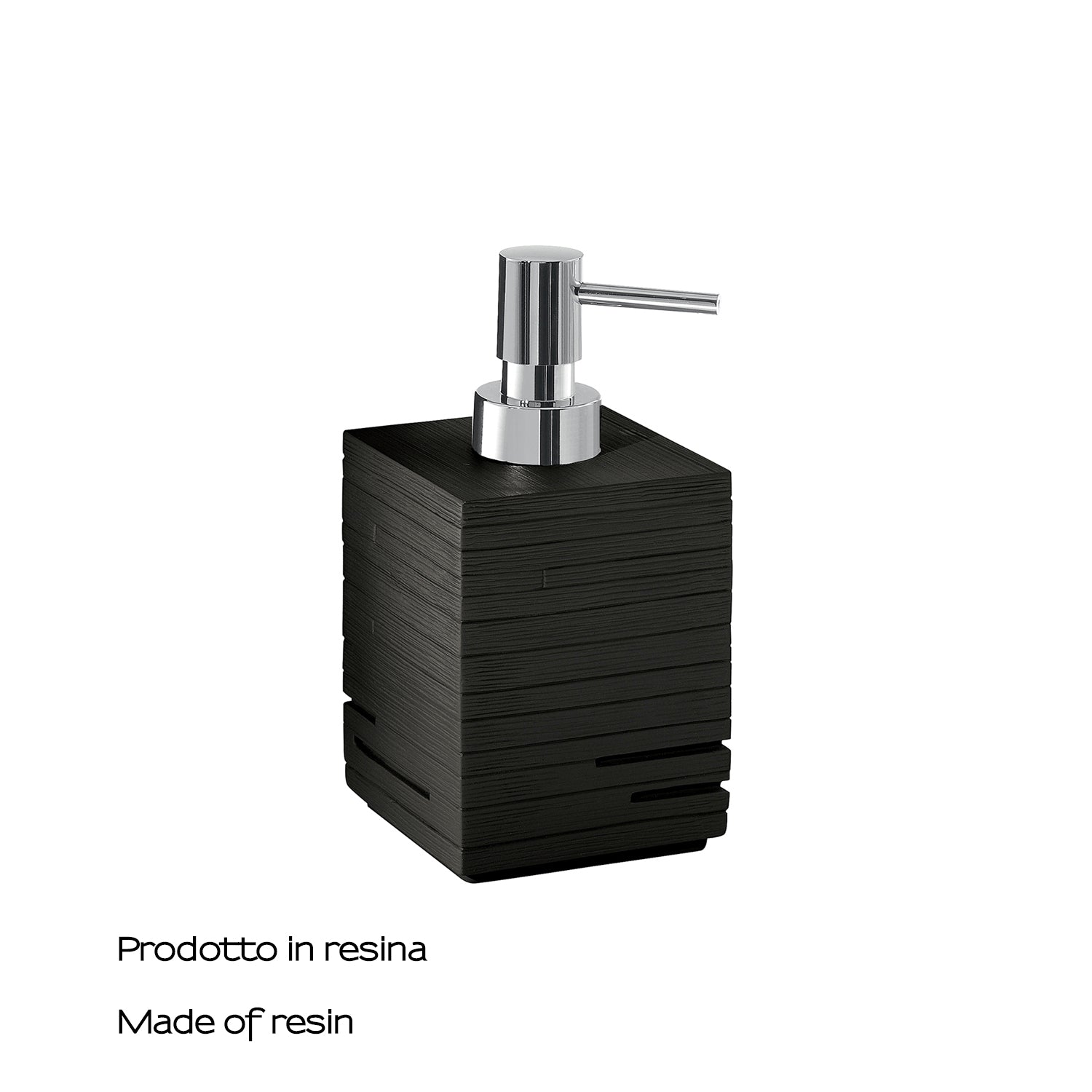 The dispenser stands out for its features: the plastic pump is complemented by a durable resin body and a base with a chrome finish that reflects light in the bathroom. The dimensions H 16 cm, L 8 cm make it ideal for countertops, maintaining order and cleanliness. A premium choice designed to last, made for those who appreciate rigorous design and lasting value.