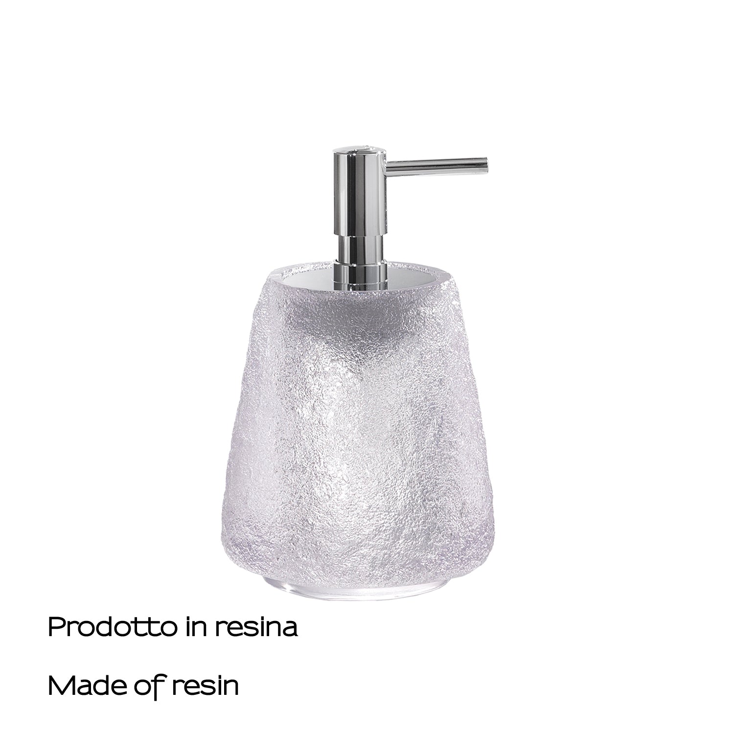 The resin soap dispenser from the Irina series by Gedy, signed by Simone Micheli, is a perfect blend of daily functionality and understated refinement. Made of fine white resin, the body reveals a soft silhouette that captures light with discreet elegance, ready to complement modern or classically inspired environments. The chrome-plated plastic dispenser adds a touch of controlled brilliance, enhancing the clean lines and quality of detail.