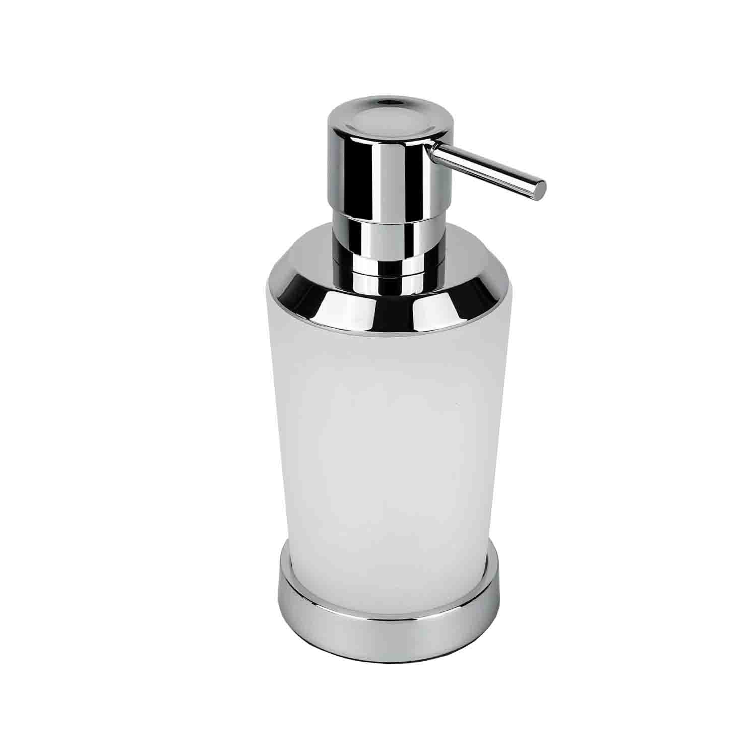 Countertop soap dispenser in brass and frosted glass - Road Collection, Colombo Design Countertop soap dispenser in brass and frosted glass from the Road collection by Colombo Design embodies the fusion of everyday functionality and timeless refinement. The carefully crafted brass expresses warmth and durability, while the frosted glass body diffuses light with a velvety softness. The sober proportions and smooth details testify to Italian artisanal craftsmanship, capable of enhancing the bathroom environment with a discreet yet authoritative presence. This piece, an integral part of the Road collection, combines practicality and beauty in an object that invites a daily ritual. Controlled dosing, reliable mechanism, and stable base ensure smooth use over time. The combination of noble materials and a glossy finish captures light without ostentation, transforming routine into a sign of style. Designed to withstand bathroom humidity, it is built to last and become a collector's item.