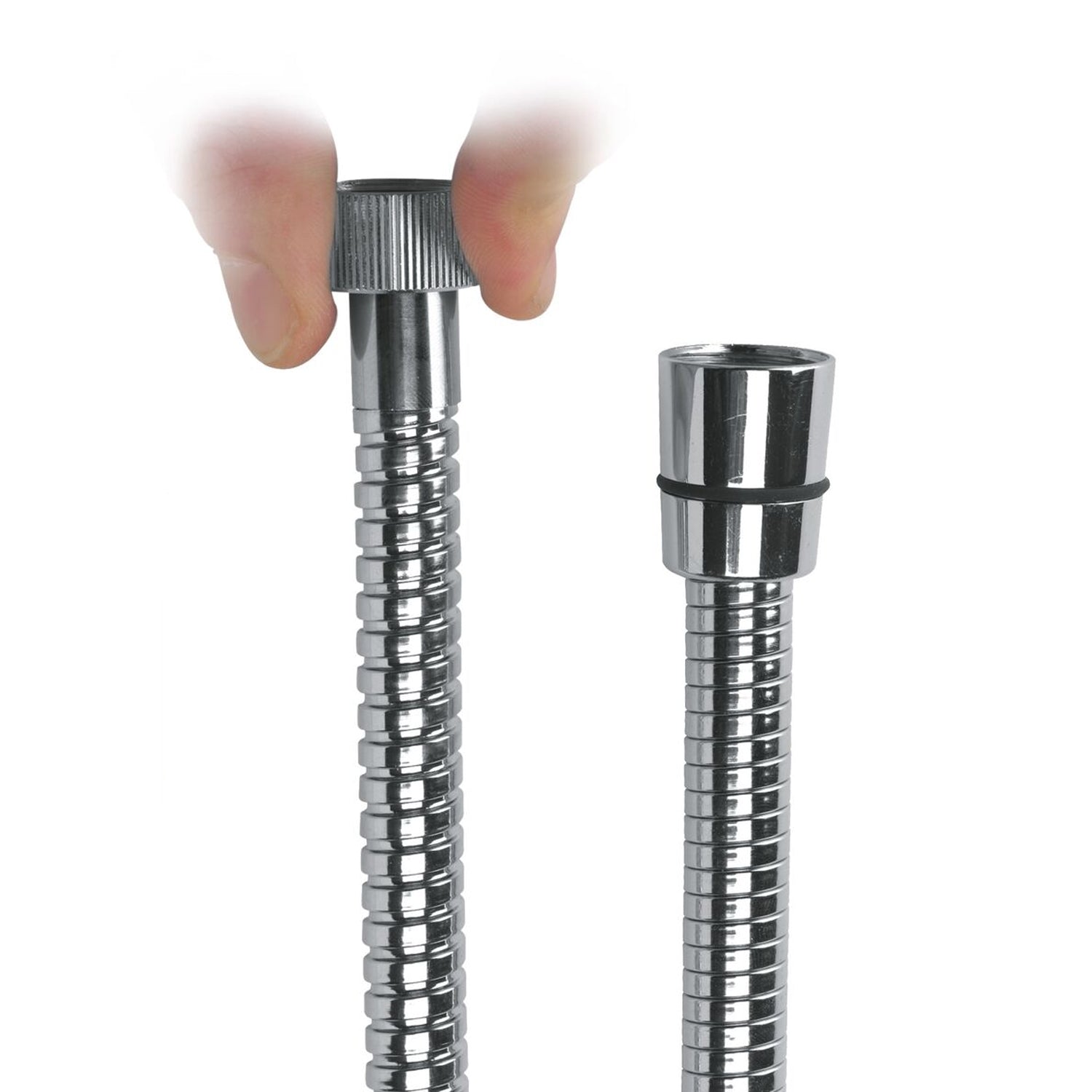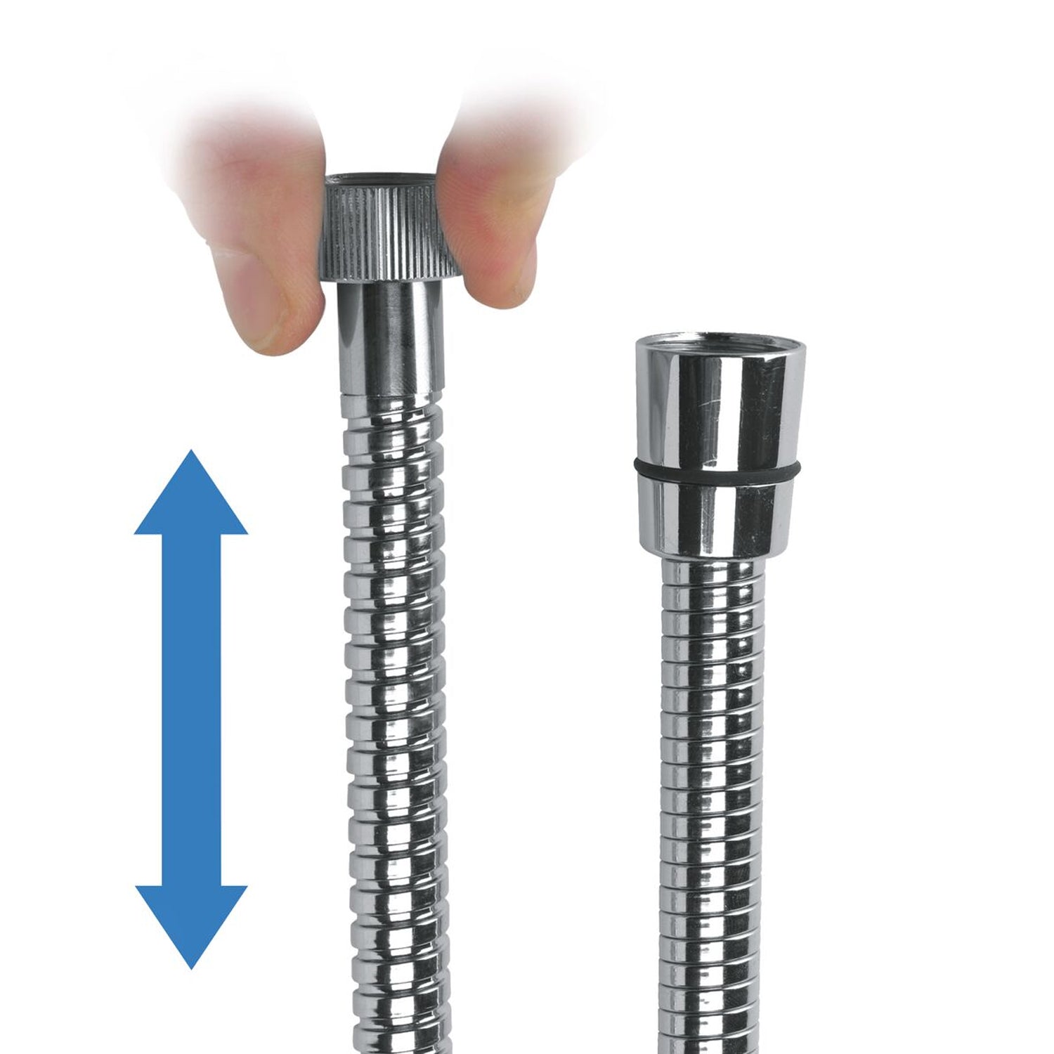 Flexible shower hose with double crimping, extendable 150/175cm in steel