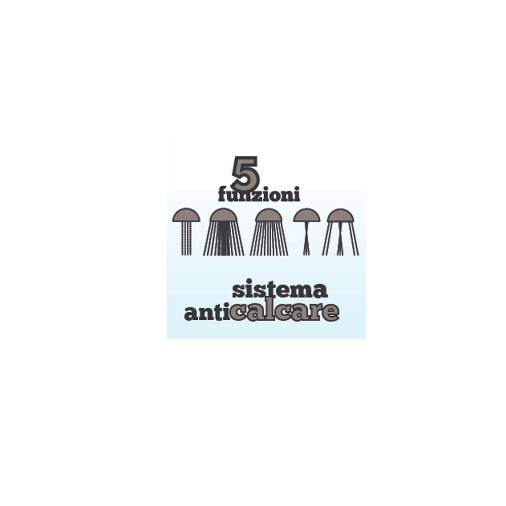 Elegant 5-function showerhead, model 13022, with 100 mm diameter head and glossy chrome finish. Designed to deliver reliable performance every day, it combines precise construction and high-quality materials. The integrated anti-limescale system (art. 110-13022) traps deposits, simplifying maintenance and maintaining consistent performance over time. An accessory that elevates the shower experience without compromise.