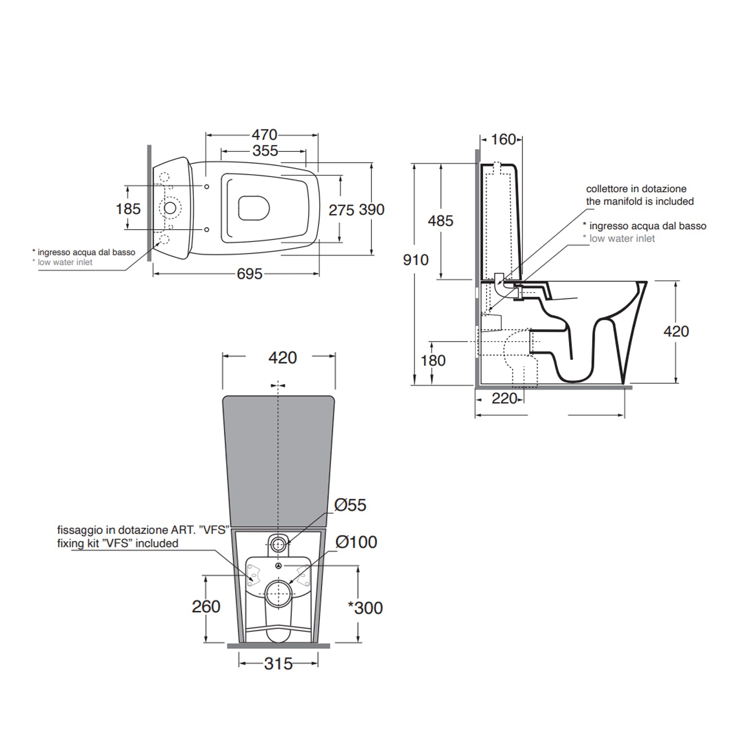 Azzurra's Hera monobloc toilet, 70x37x90.5 cm, Glossy White, embodies the evolution of the classic floor-mounted sanitary ware in a contemporary key. Designed by Daniel Libeskind, the piece combines sculptural volumes, a glossy finish, and functional technologies to offer a majestic presence in the bathroom without sacrificing everyday practicality. The form unites severity and lightness, delivering a design essence that endures over time and invites a dialogue between aesthetics and function.