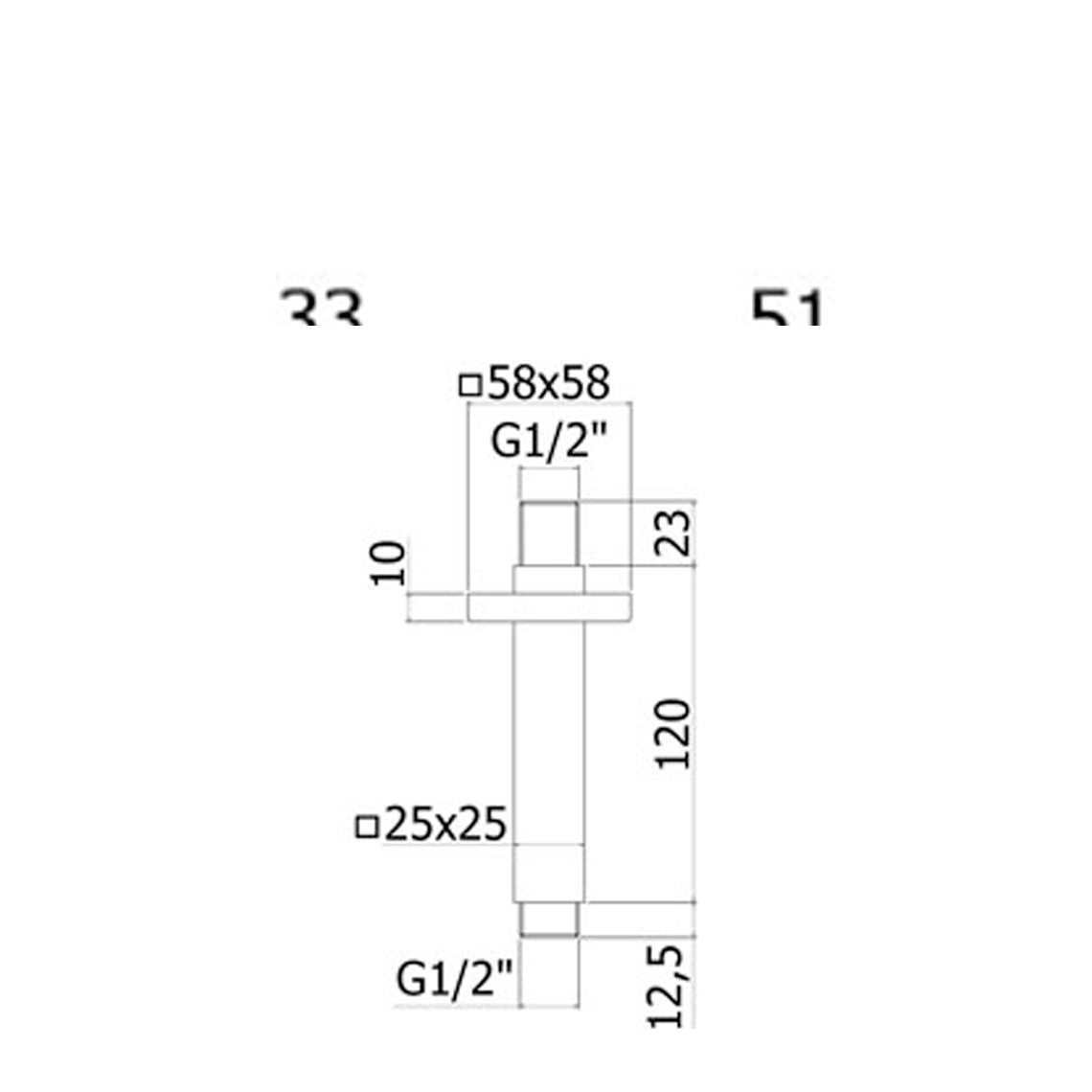 - Dimensioni: 25 x 25 mm, lunghezza 120 mm