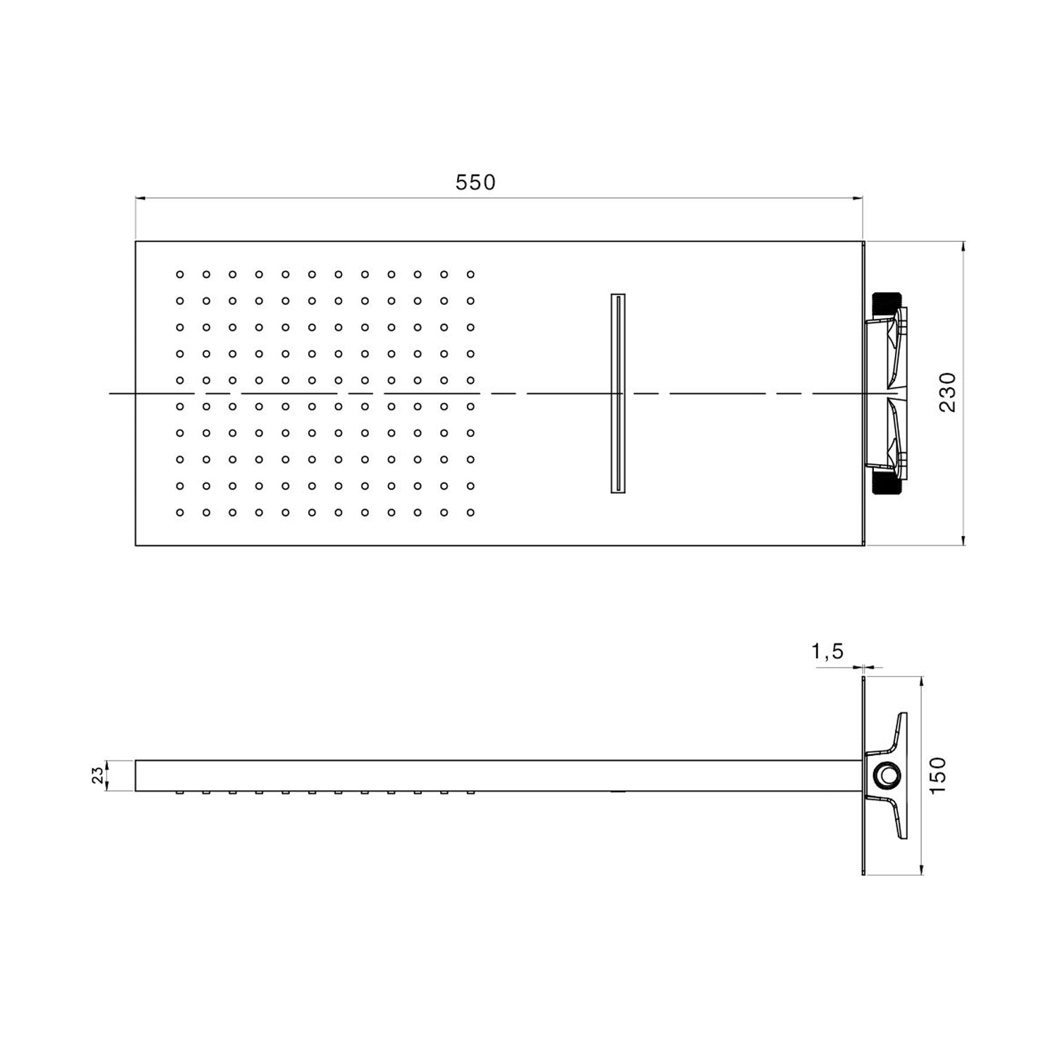 Helsinki Showerhead 55x23cm in black steel with 2 jets CeramicStore presents the Helsinki showerhead, to add a touch of elegance and modernity to your bathroom. They are designed and made with high-quality materials to ensure resistance and durability. Stainless steel showerhead, easy to clean and maintain. Attention: The showerhead includes a built-in body to be embedded before installation! The showerhead has 2 jets: Rain jet Waterfall jet NB: The exact color of the showerhead is shown at the top of the first photo. TECHNICAL FEATURES: Product Code: SD4099003NO Type: Showerhead Brand: Sphera Docce Material: Steel Finish: black Helsinki Showerhead 2 Jets DIMENSIONS: Showerhead 550x230 mm If you are looking for products suitable to make your bathroom modern, the Sphera lines on CeramicStore are what you need!. High-quality shower enclosure.. High-quality crystal.. High-quality aluminum profiles.
