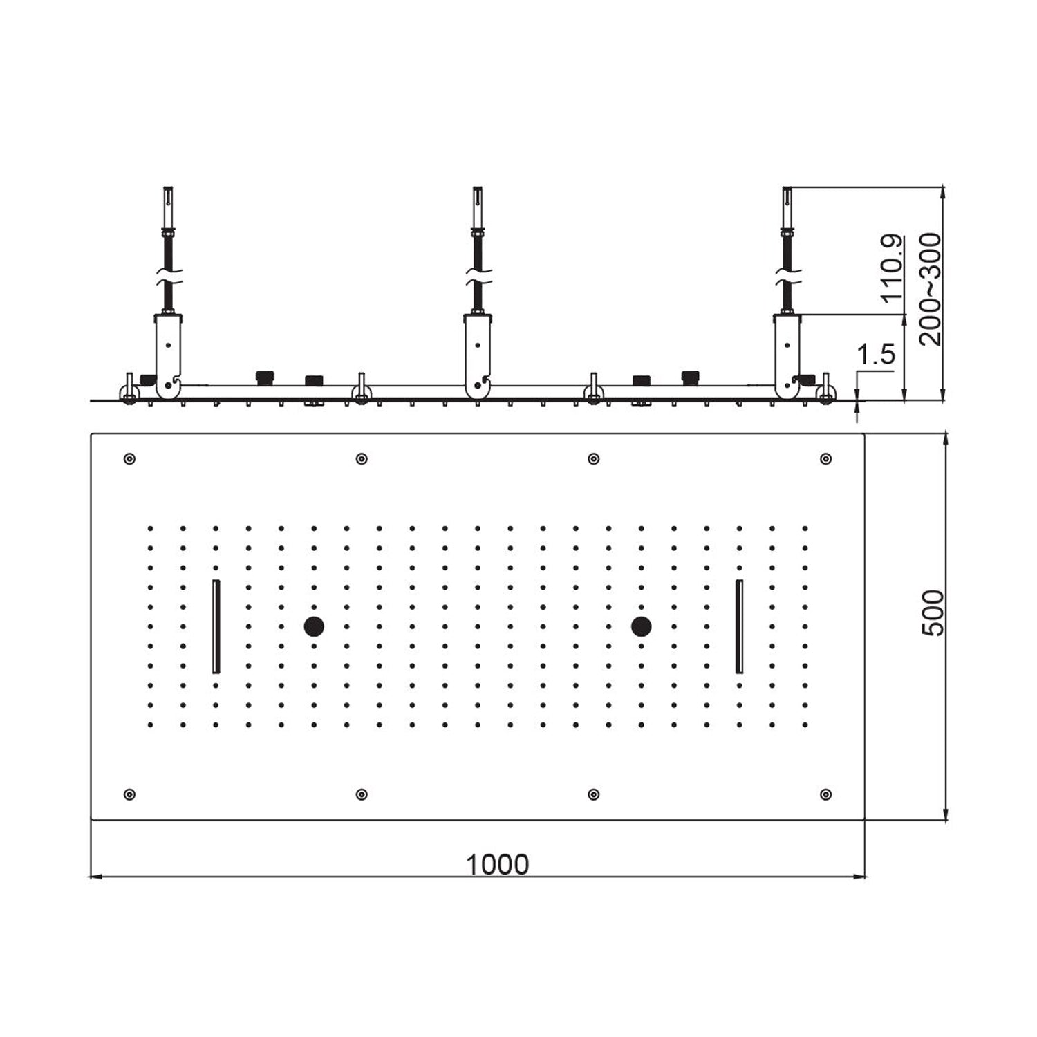 Stardust showerhead 100x50cm in steel with anti-limescale and 3 jets