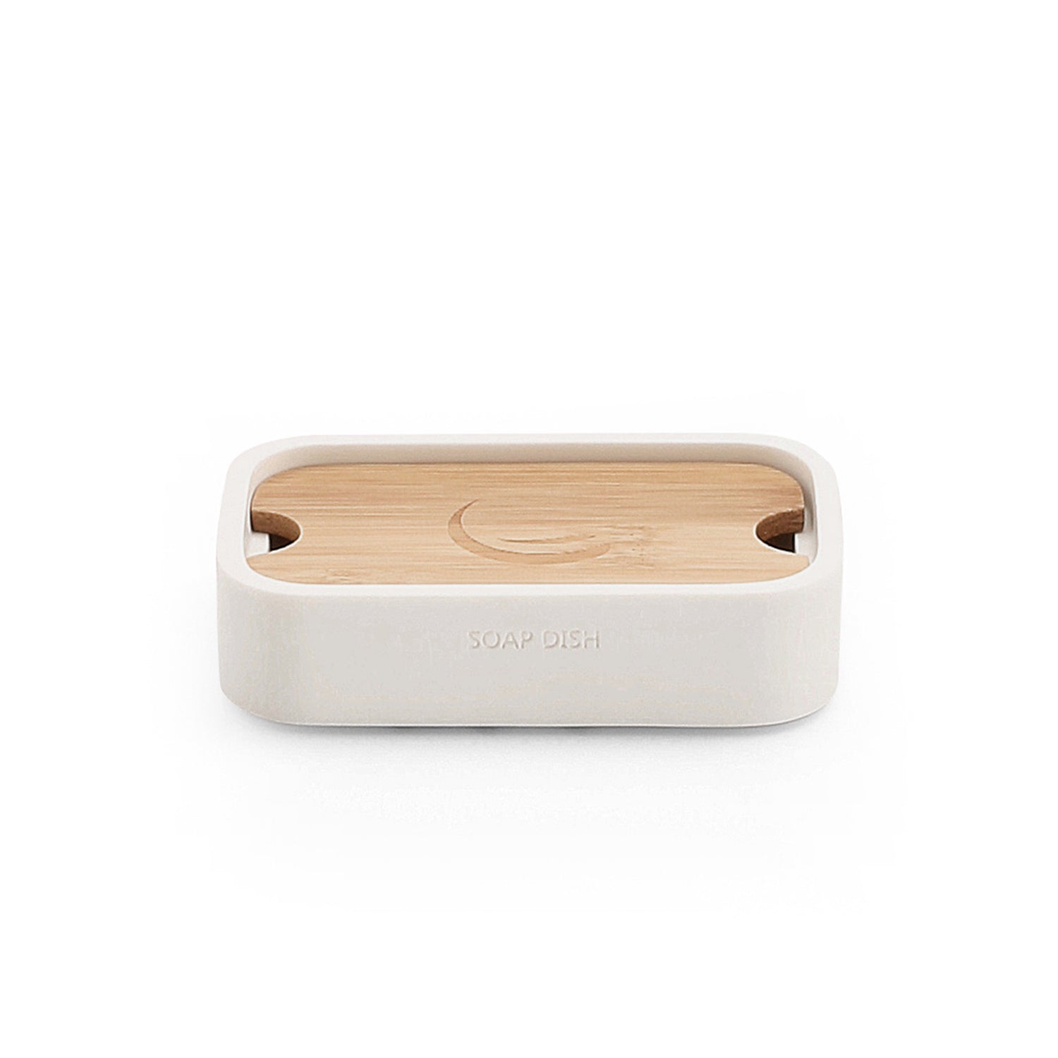 Gedy Ninfea model soap dish - White Matt is a small design object that elevates the daily bathroom ritual. The matte white finish captures light with understated refinement, while the natural bamboo insert adds an organic and warm note. The lines are essential, with soft edges that protect the surface and invite careful placement. The dimensions, L 12.8 x W 8.2 x H 3 cm, make it a discreet yet characterful presence, capable of blending with contemporary environments without imposing style.