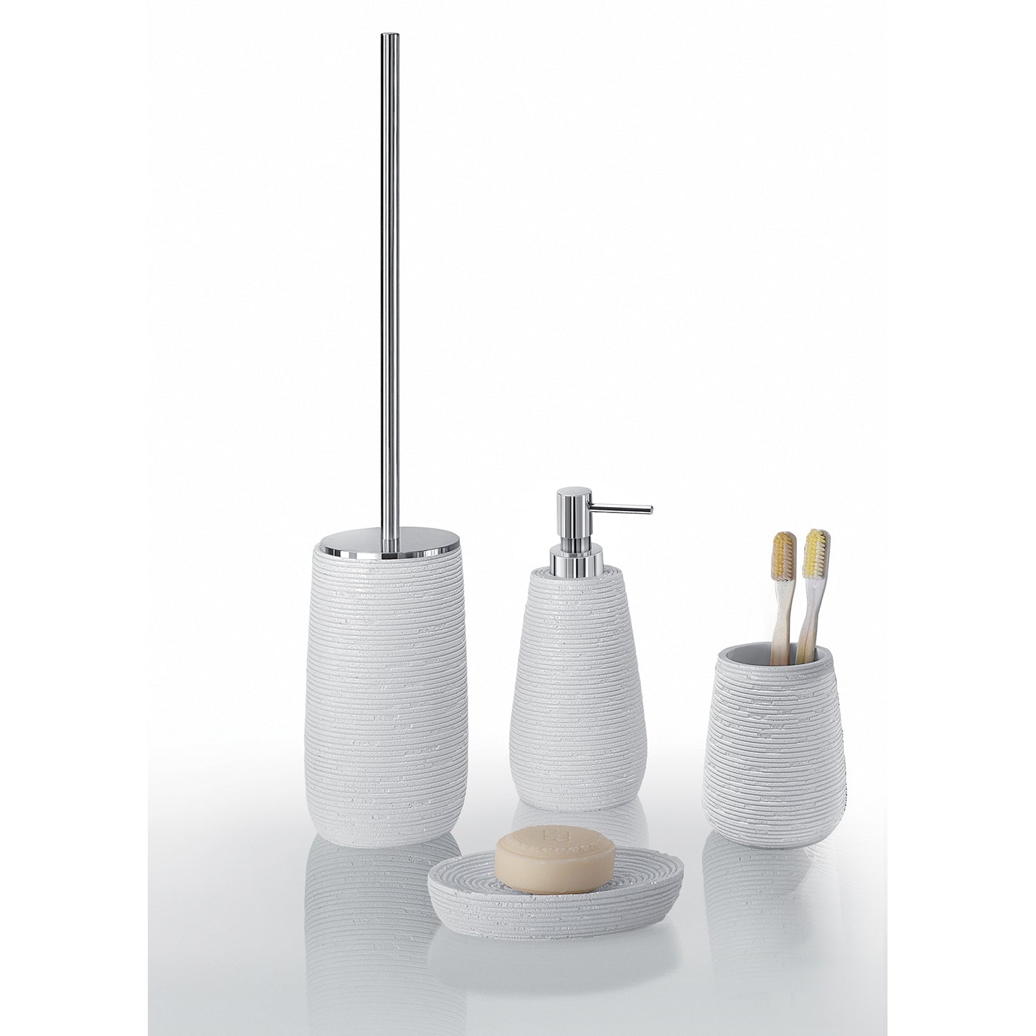 Born from Gedy's Gemini line, this white resin soap dish is a style statement combining practicality and craftsmanship. Made from high-quality resin, the immaculate finish captures light with understated elegance, highlighting the circular concentric texture that conveys a distinct artisanal signature. The essential and timeless shape fits perfectly in modern and classic bathrooms, offering a refined presence without overwhelming the space.