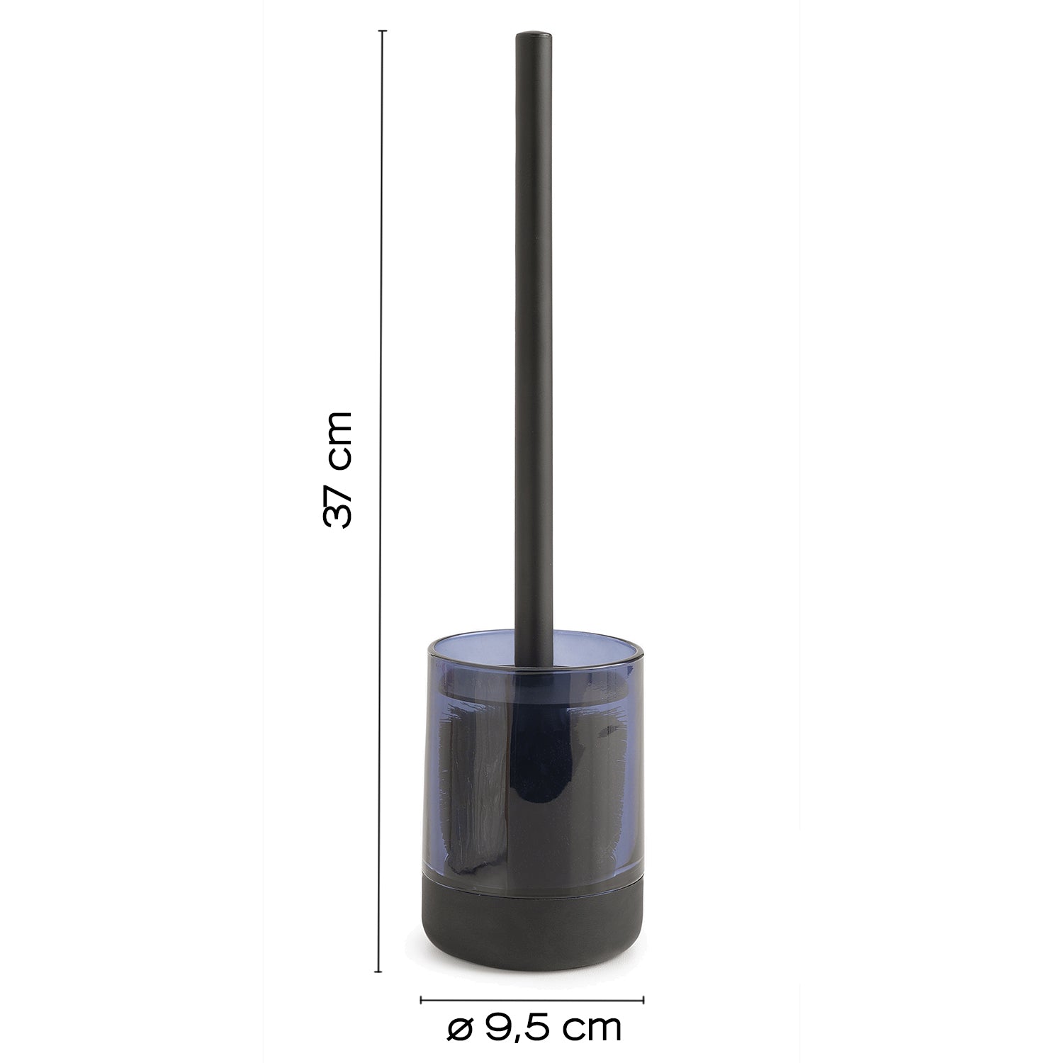 Glass toilet brush from Gedy's Nicole series - Blue is an example of everyday refinement. The body is made of translucent blue glass, enhanced by a black silicone base that ensures stability and surface protection. The modern, linear, and timeless design reflects the artisanal mastery typical of the Nicole collection. With dimensions Ø 9.5 cm and height 37 cm, it discreetly integrates into contemporary bathrooms, offering precise function without ostentation.