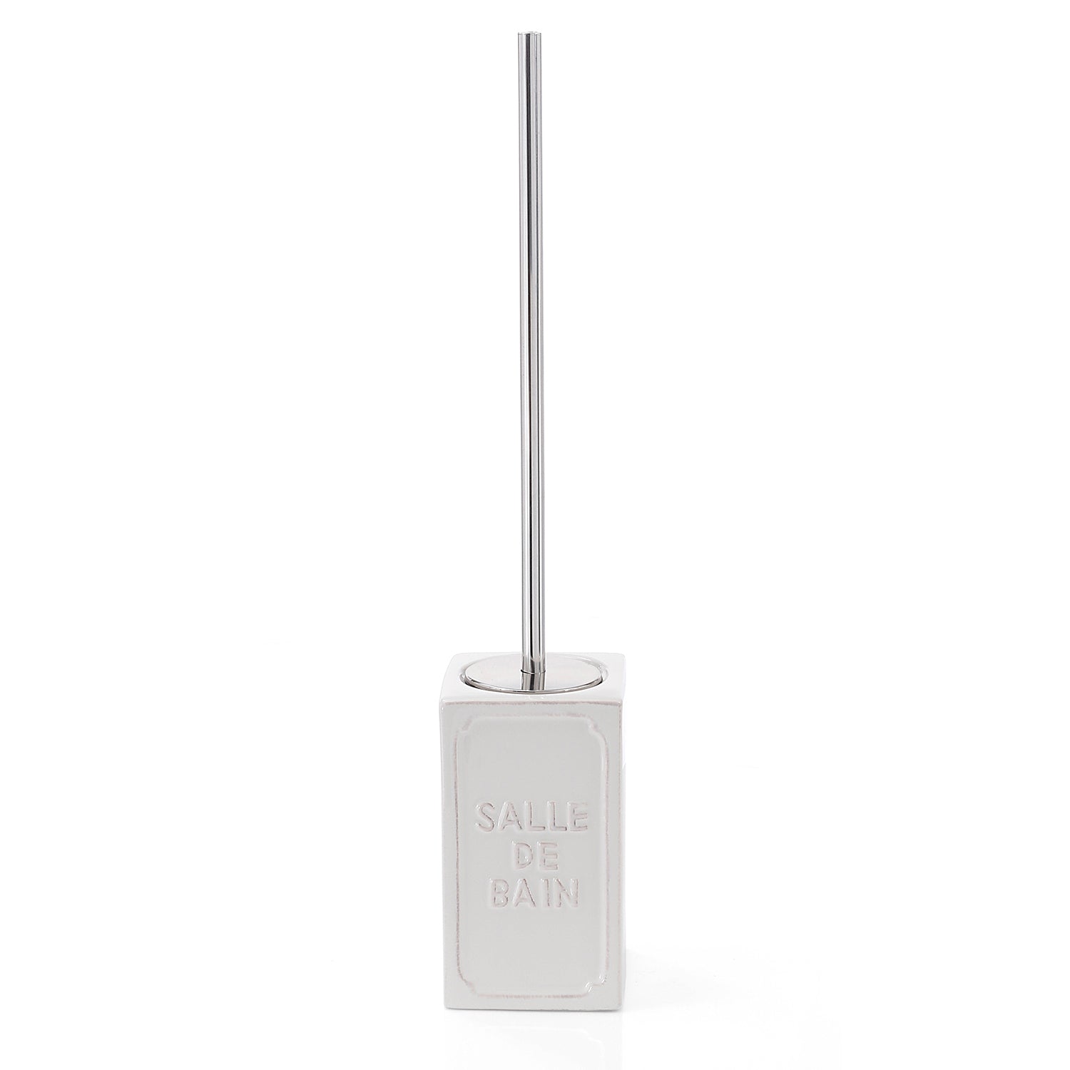 The engraved front inscription "SALLE DE BAIN" adds a touch of international reference, a signature of timeless style. The combination of ceramic and chrome steel enhances the purity of the shapes, offering a practical and durable solution for the home. Perfect for contemporary and classic environments, this toilet brush keeps the bathroom tidy with a presence that enhances the decor, without ostentation.