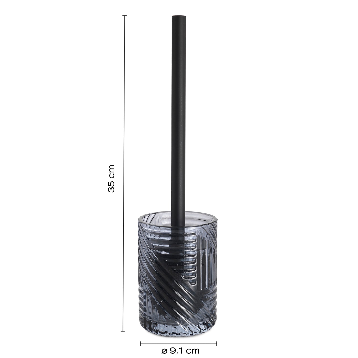 Gedy Corinne series glass toilet brush - Blue is a refined presence in the contemporary bathroom. Made of high-quality blue glass, the translucent body reflects light with sober depth, offering a touch of discreet luxury. The bristle tuft and the support rod in black finish complete an essential design, made to last over time. The dimensions Ø 9.1 cm x H 35 cm ensure stability and ease of use, turning daily use into a stylish gesture. A signature object of craftsmanship and attention to detail, the Corinne series presents a timeless refinement that integrates with modern and classic environments.