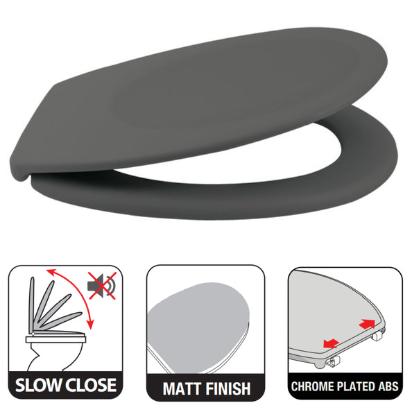 The KLAK universal toilet seat combines aesthetic simplicity and structural robustness. Made of Thermo Dur, it offers a wear-resistant and easy-to-clean surface, designed for everyday life. The Matte Gray finish provides discreet elegance, suitable for modern and refined bathrooms. The stainless steel hinges ensure controlled closing and reliable sealing over time. Every detail reflects careful craftsmanship aimed at guaranteeing stability and long-lasting durability without compromise.