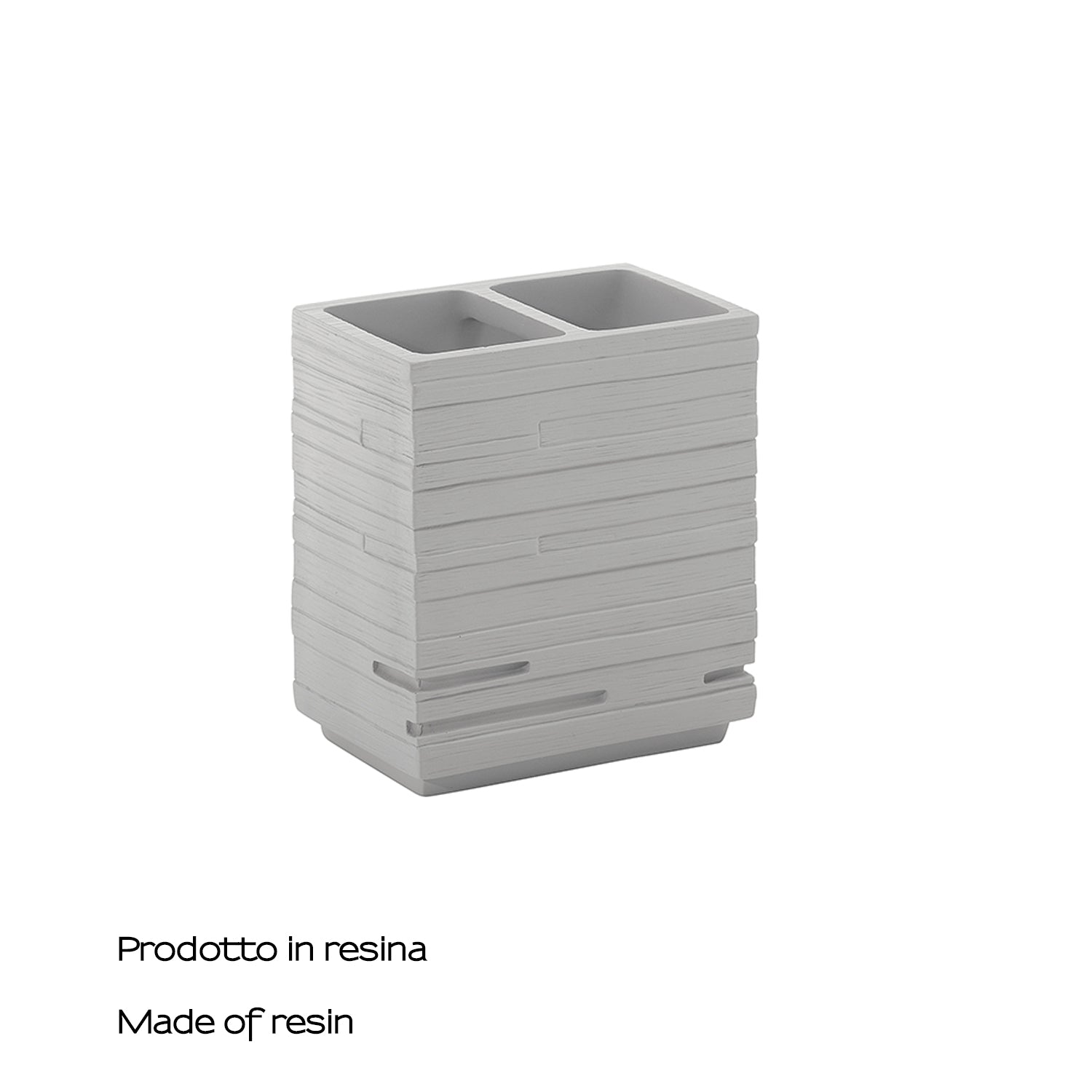 The Gray resin countertop toothbrush holder from Gedy's Quadrotto series is an elegant and functional solution for your bathroom. Made of high-quality resin, it offers resistance and durability over time. The clean lines and horizontal texture recall contemporary aesthetics, giving the bathroom countertop a sober and refined presence. Limited availability for those seeking a premium and timeless detail.