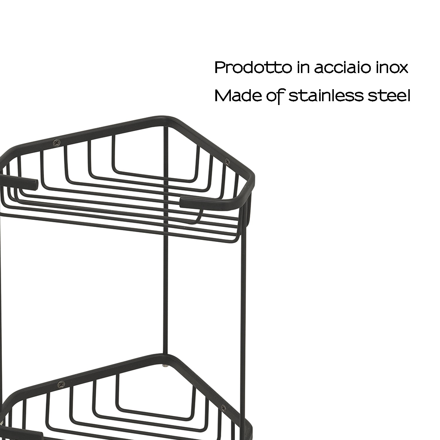 La finitura Nero Matt, opaca e resistente all’umidità, si combina con una struttura in filo metallico che assicura leggerezza visiva e robustezza. Progettato per inserirsi con equilibrio nell’angolo della doccia, offre due ripiani ben proporzionati per bottiglie, spruzzi e accessori, mantenendo ordine e facilità di pulizia. Realizzato con cura artigianale nell’eccellenza italiana di Gedy, è un complemento che privilegia stile sobrio e valore duraturo nel tempo.
