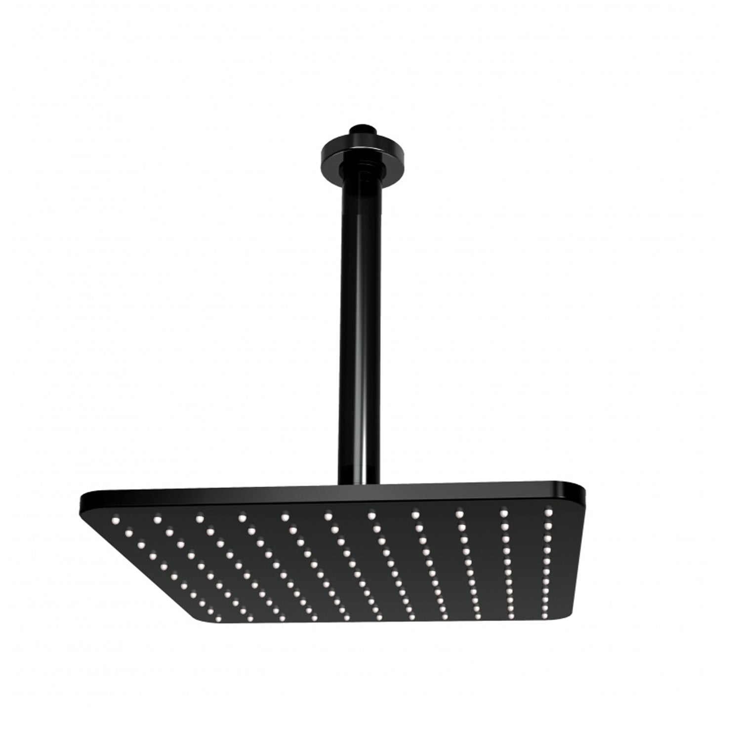 Soffione de ducha cuadrado de techo Bossini Cosmo 28x28 negro mate con brazo 300 mm