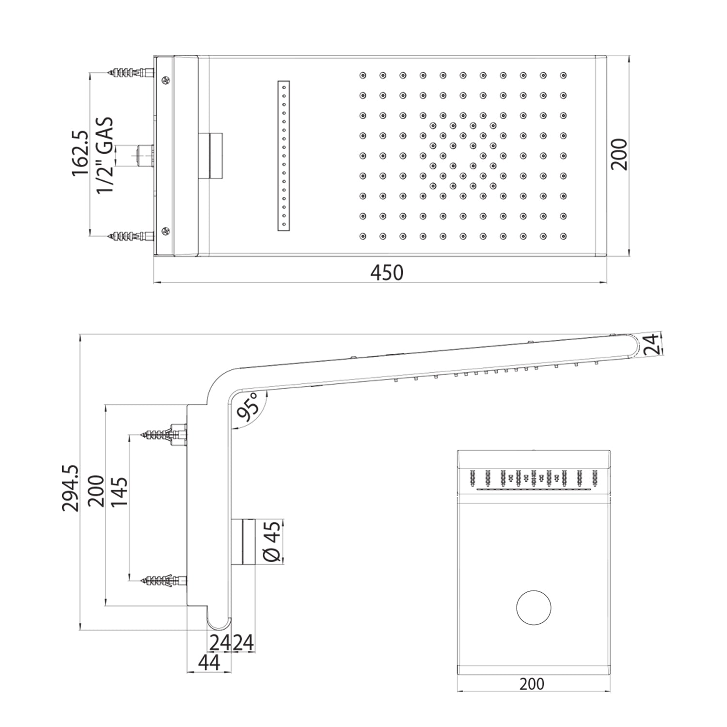 Soffione de ducha Bossini Syncro Rain 3 chorros acero inoxidable cromado 45x20 cm