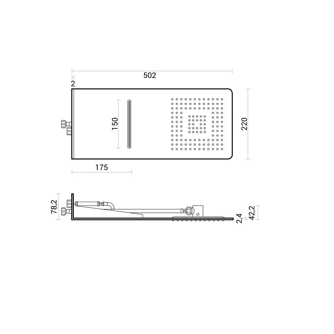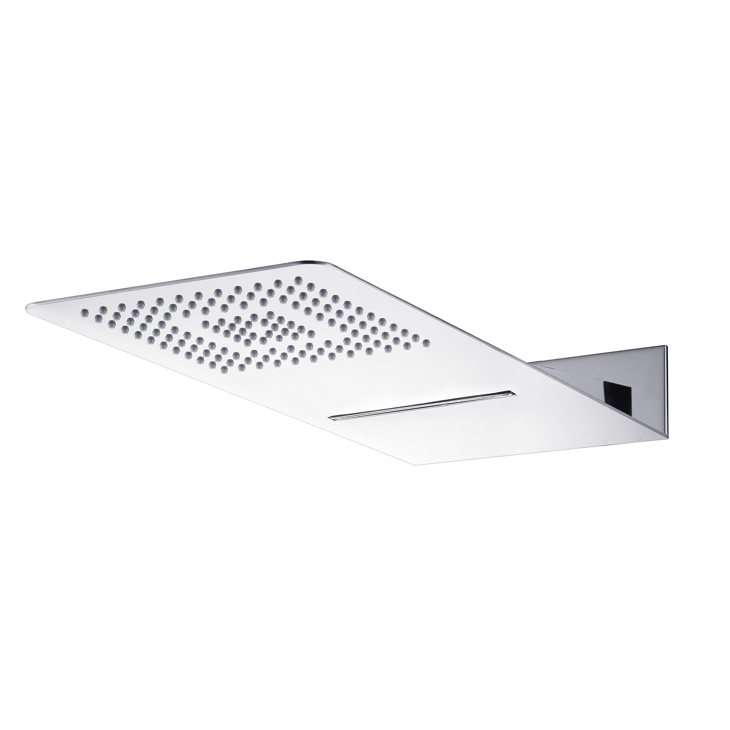 • Rociador: rectangular ultra slim 50x22 cm con cascada, de pared en acero inoxidable pulido espejo.