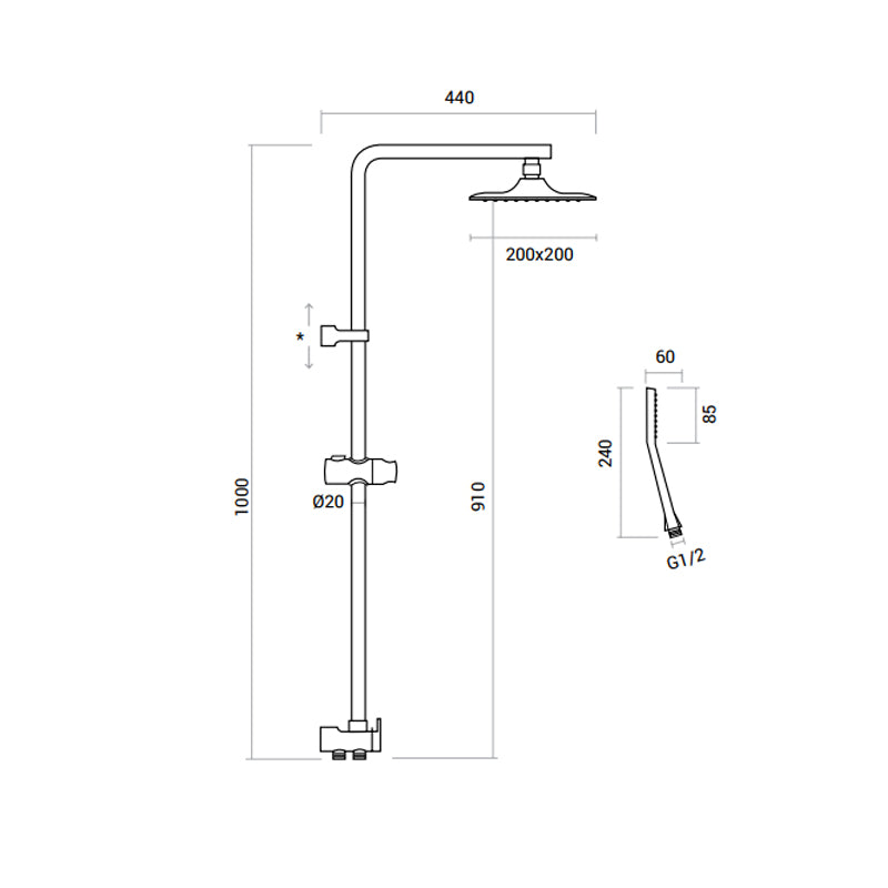 Colonna Doccia Mercurio con soffione quadrato 20x20 e doccia mono getto