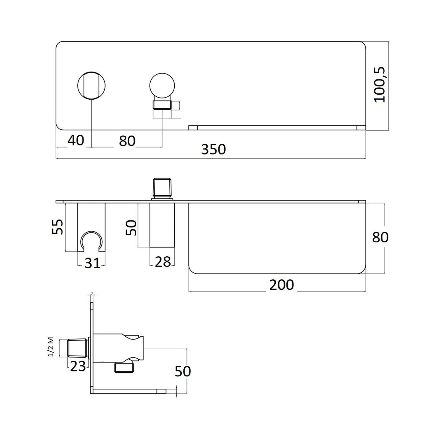 Mensola para toma de agua con soporte de ducha fijo redondo en latón