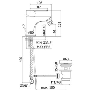 • Tipo de mezclador: monomando para bidé