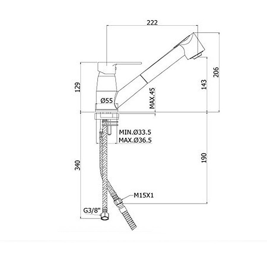 Mezclador para fregadero monoboca con ducha de 2 chorros. Modelo RED183CR de Paffoni