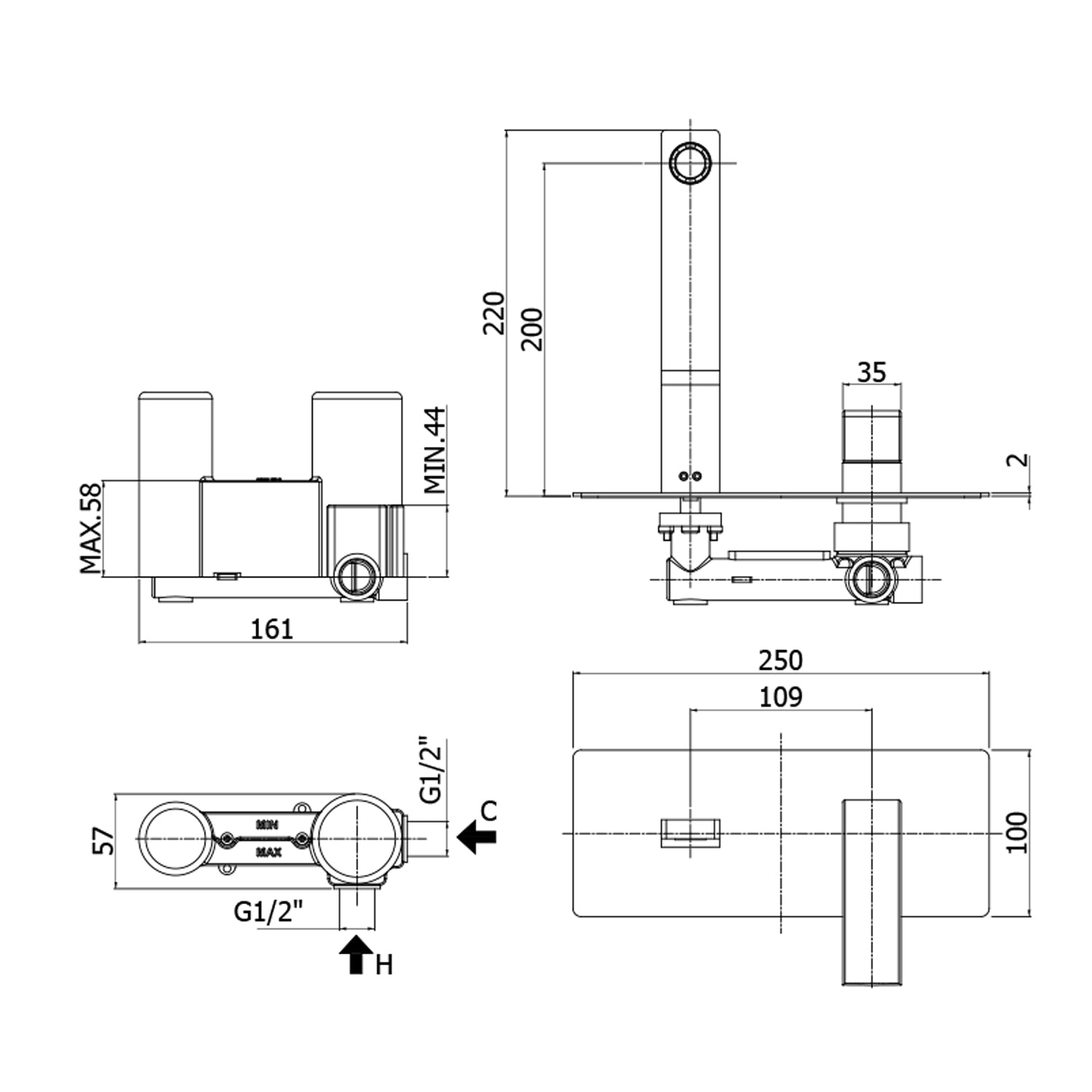 Mezclador empotrado para lavabo Paffoni Elle con pico y placas de acero