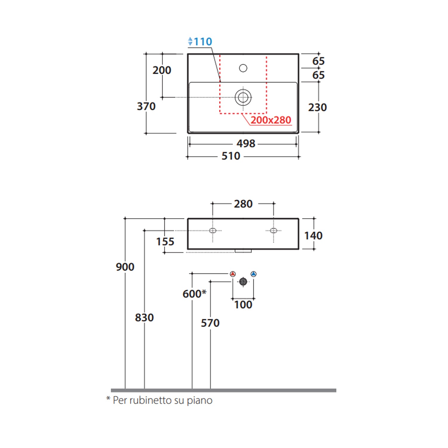 - Instalación: compatible tanto como lavabo de apoyo como suspendido