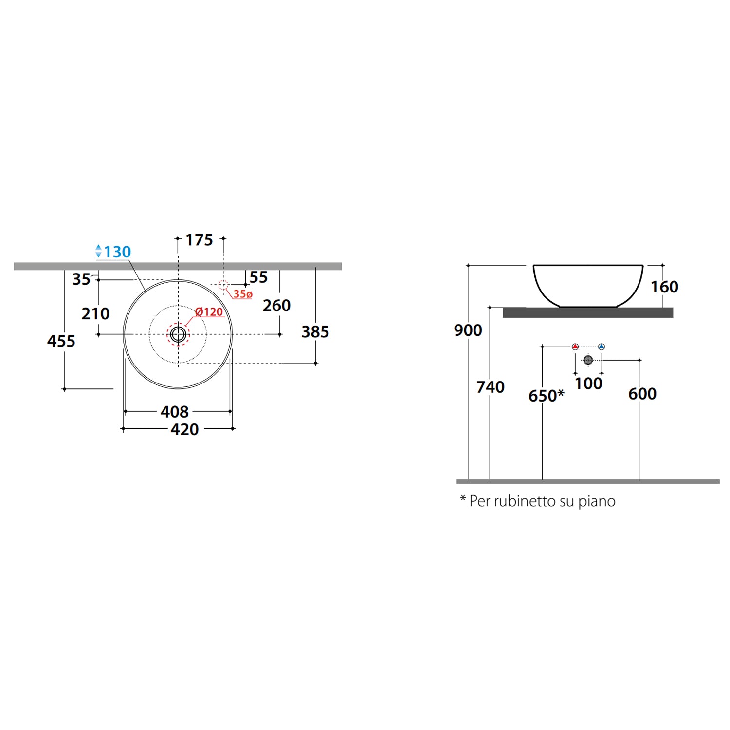 Lavabo redondo Globo T-Edge Ø42 cm Blanco brillante