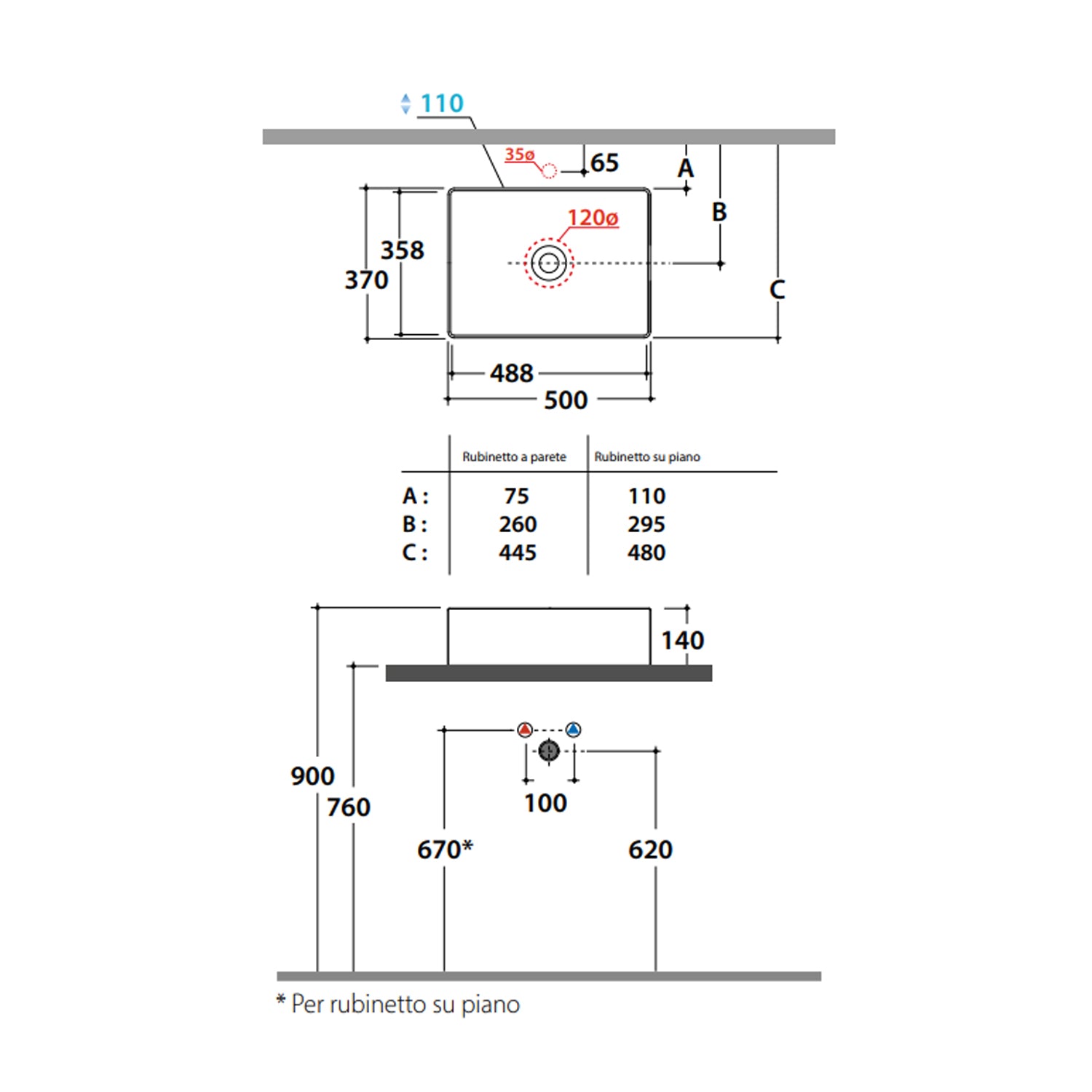 - Instalación: lavabo de sobreponer sobre encimera de baño.