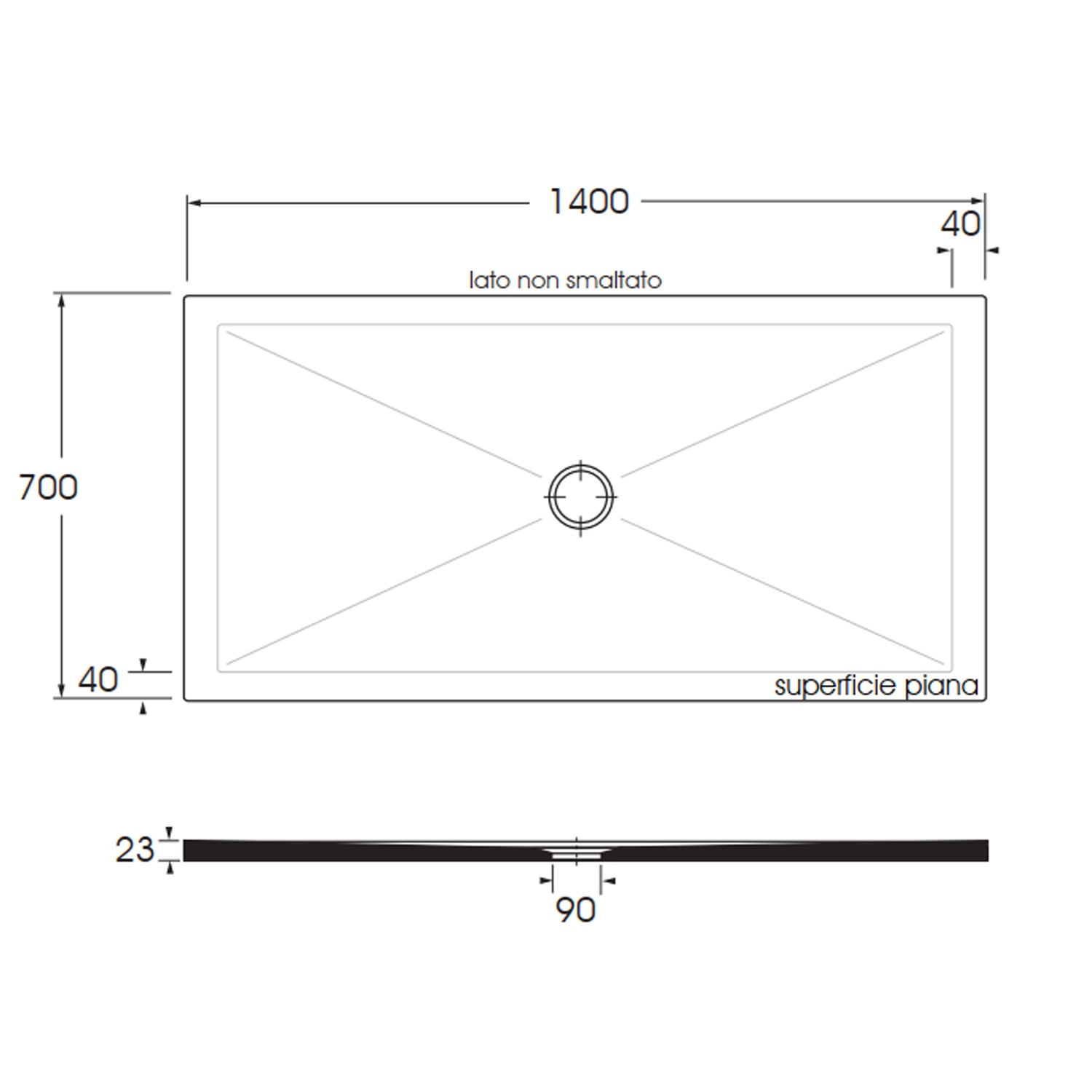 • Dimensiones: 140 x 70 cm, grosor 2 cm (plato de ducha de cerámica maciza).
