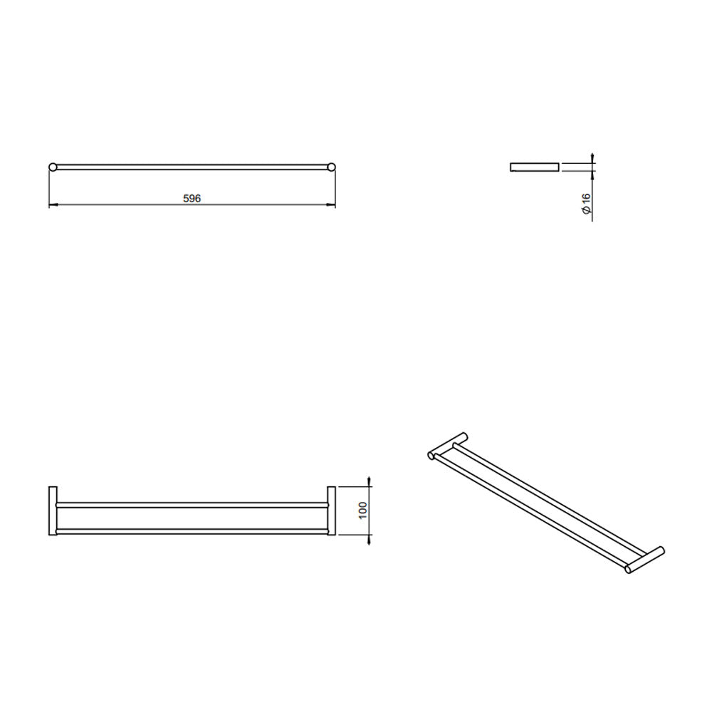 Toallero doble de pared en acero inoxidable pulido de la colección 'Logic' de Cosmic cm 60