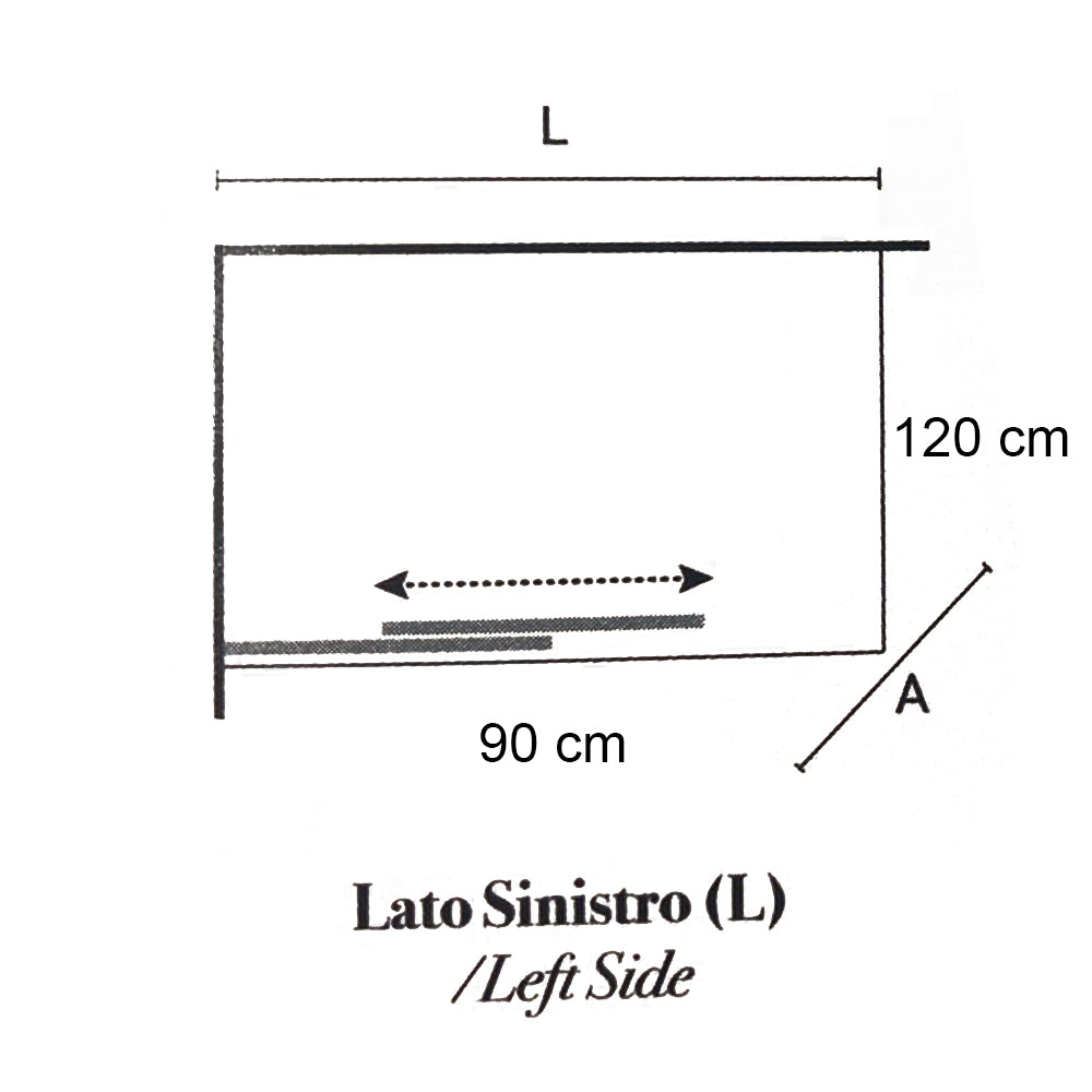 Cabine de douche rectangulaire avec ouverture angulaire 90x120 cm modèle Lauren en verre trempé 8 mm -CÔTÉ GAUCHE