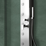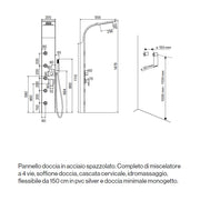 Pannello Doccia in acciaio inox spazzolato con miscelatore a 4 vie soffione con cascata, idromassaggio, flessibile e doccetta Smeraldo