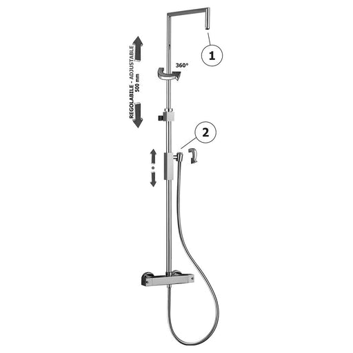 Afficher tous les détailsColonna doccia regolabile Mini Birillo, completata dal soffione Master King e dal miscelatore termostatico cromato, incarna una eleganza progettua...
