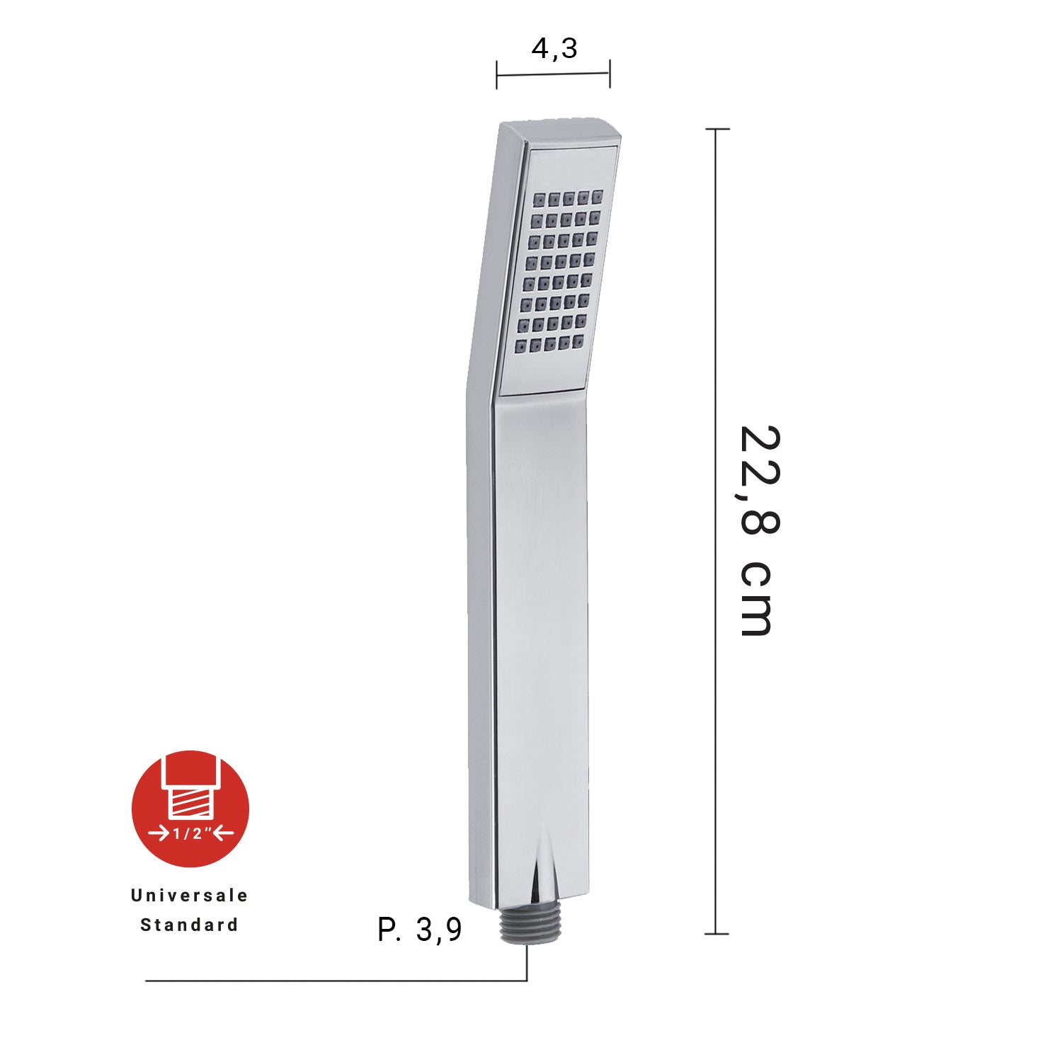 Douchette 1 jet Trendy 02 de Gedy - Chromée incarne un équilibre entre design contemporain et raffinement artisanal. La finition chromée met en valeur la précision italienne, tandis que le corps en ABS résistant garantit légèreté et longévité. Les dimensions compactes (L. 4,3 x P. 3,9 x H. 22,8 cm) en font une présence discrète mais de caractère, capable de valoriser chaque salle de bain avec une ligne sobre et élégante.