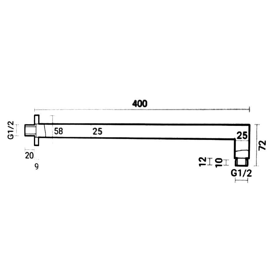 Pomme de douche carrée 25x25 avec bras long 40 cm en laiton noir mat